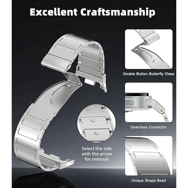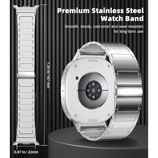 Bu Galaxy Watch 8 paslanmaz çelik kordon, akıllı saatinizin lüks görünümünü artırırken kusursuz bir uyum sağlayan klasik bir stile sahiptir.