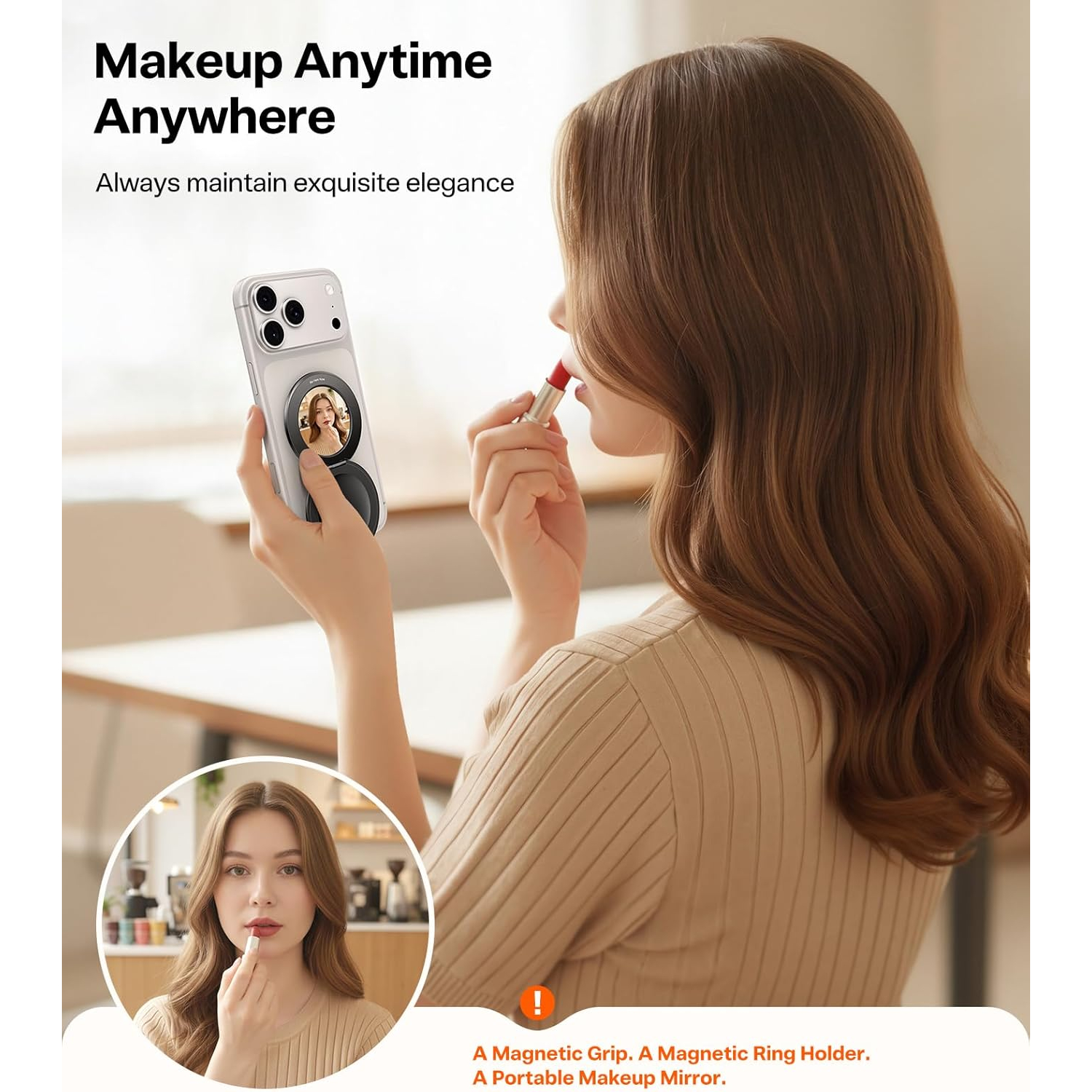 Geliştirilmiş MagSafe tutucu, TikTok dikey kısa videoları ve FaceTime aramaları için mükemmel, rahat bir dikey ekran görüş açısı sağlar.