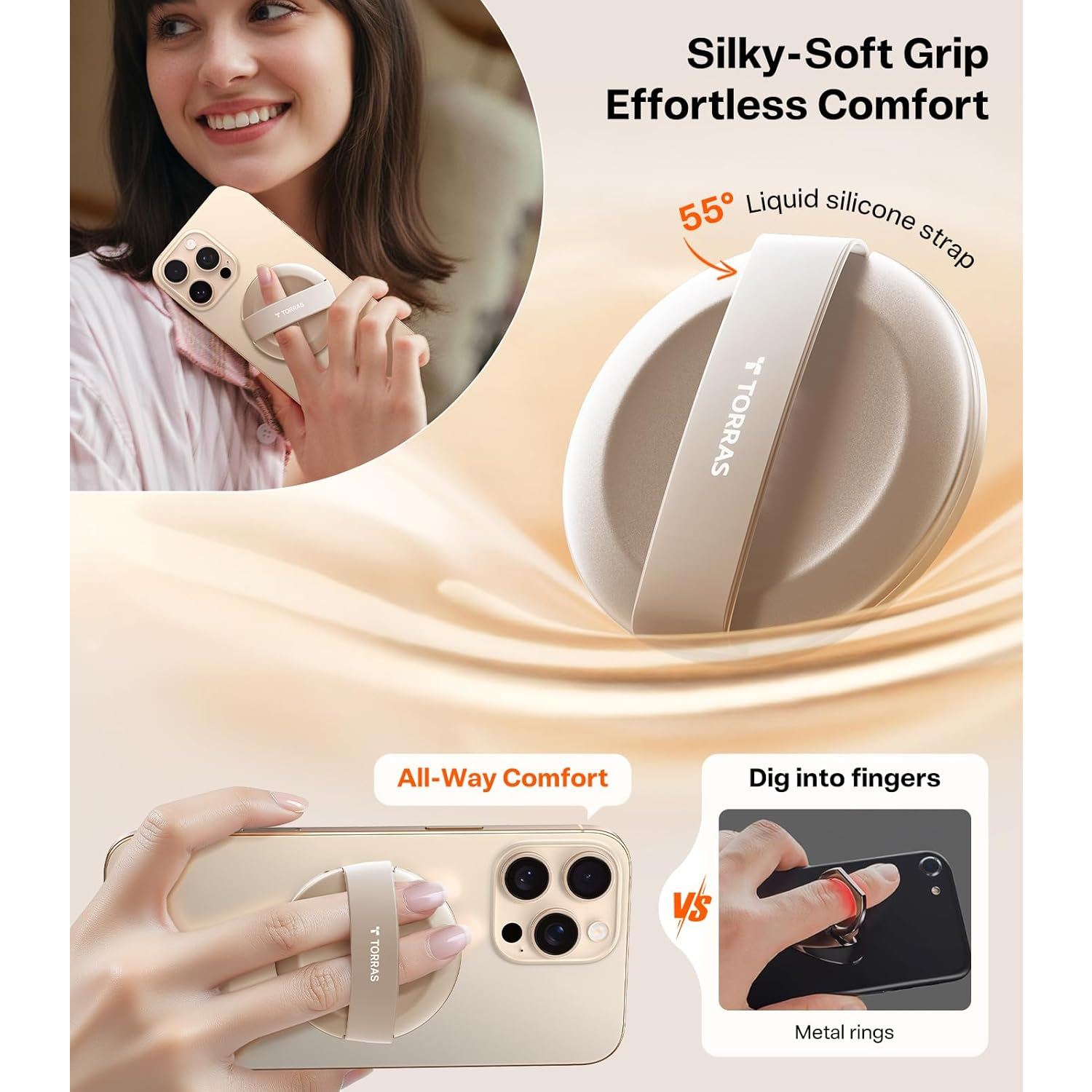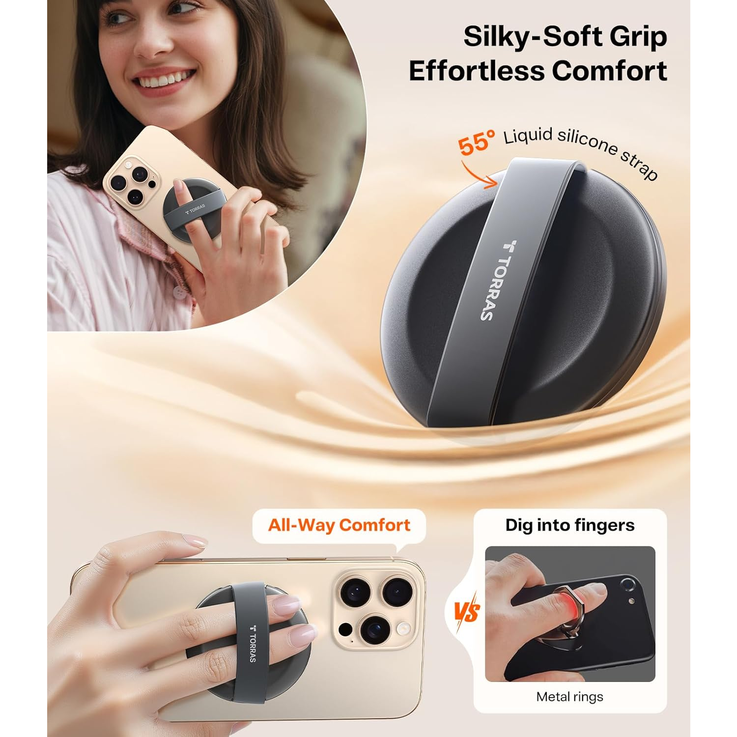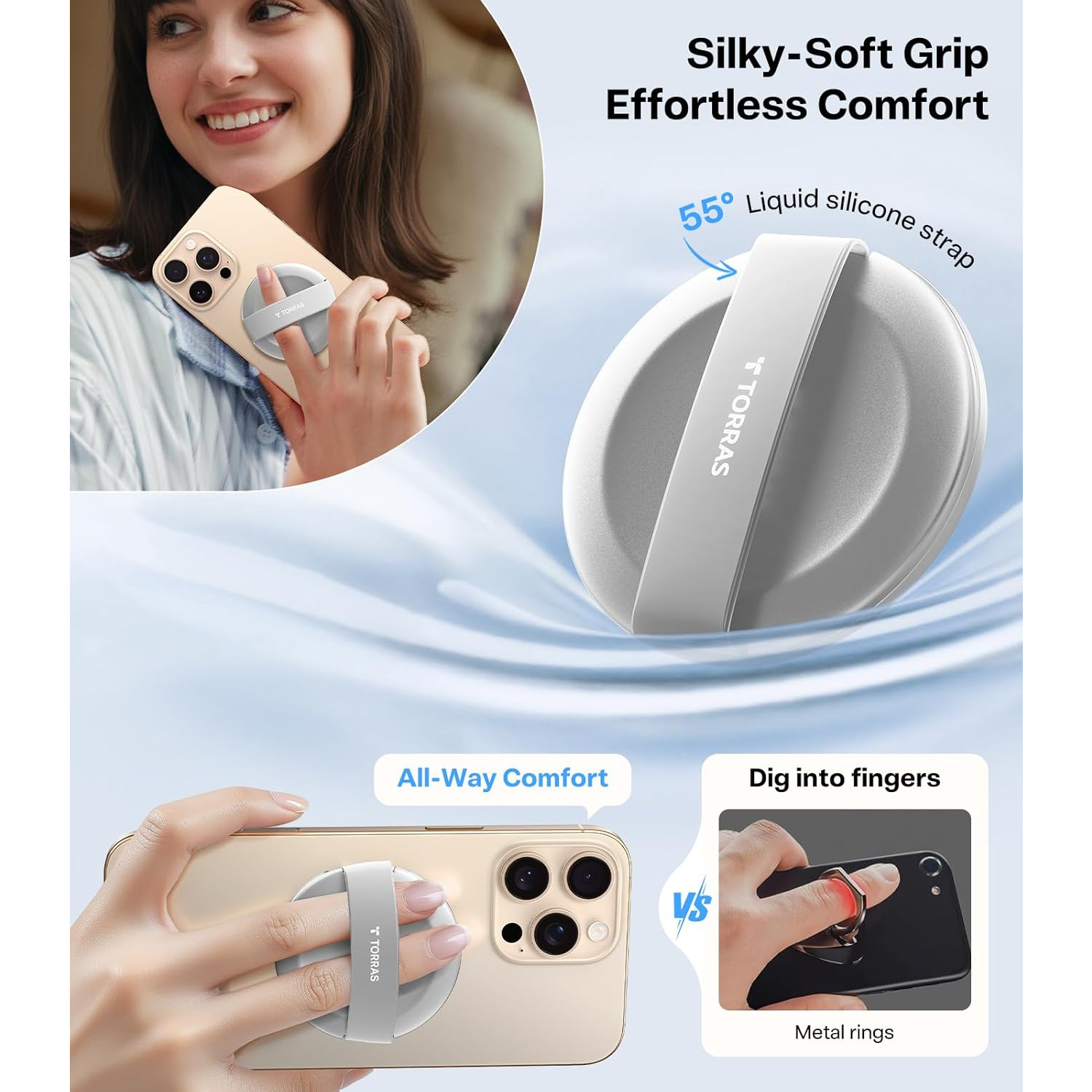 Torras MagSafe yüzük standı, askeri sınıf çinko alaşımı ve hassas mühendislikle üretilmiş olup, benzersiz bir stabilite sağlayan rahat bir silikon tutuşa sahiptir.