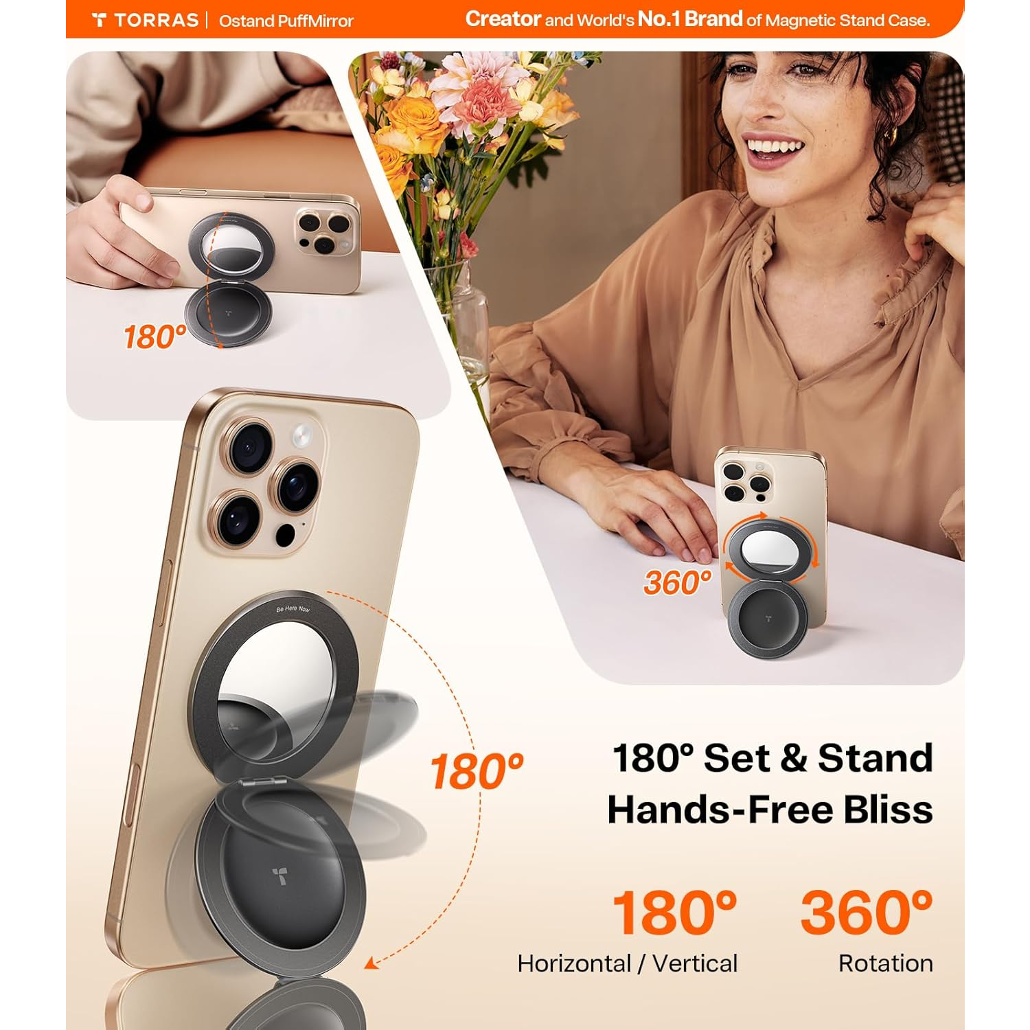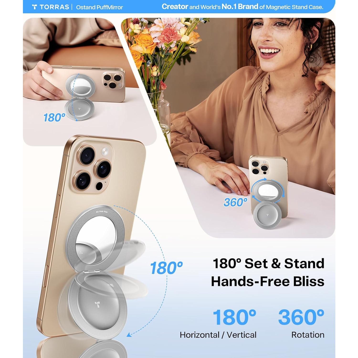 Bu yenilikçi MagSafe halka standı, 360° dönüş ve 180° çevirme olanağı sunarak, birden fazla açıda çok yönlü ayarlamalar yapmanızı sağlar.