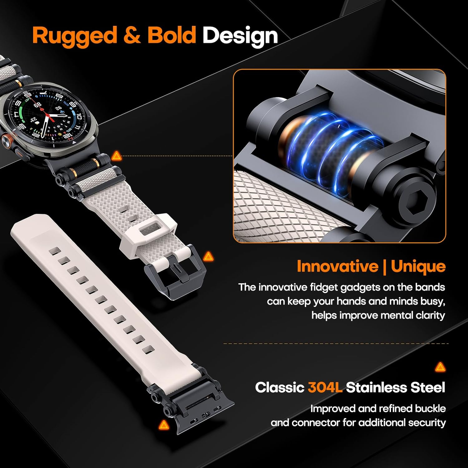 Yeni paslanmaz çelik konnektörler, Samsung Galaxy Watch Ultra 7/8 47 mm ile renk uyumu sağlayarak saatinizi cesur ve maceraya hazır bir parçaya dönüştürür.