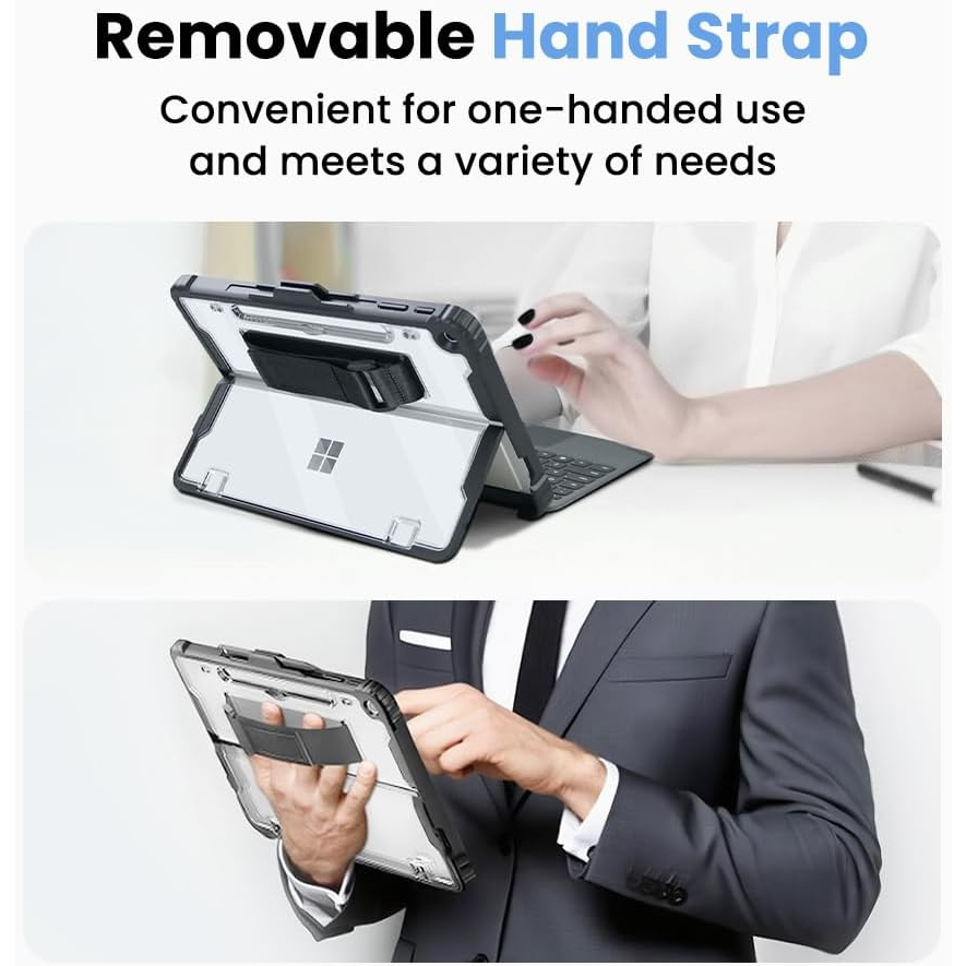 Surface Pro 12 inç kılıfın dört köşesi, düşürüldüğünde darbeyi iyi emen TPU kalınlaştırma ile işlenmiştir.