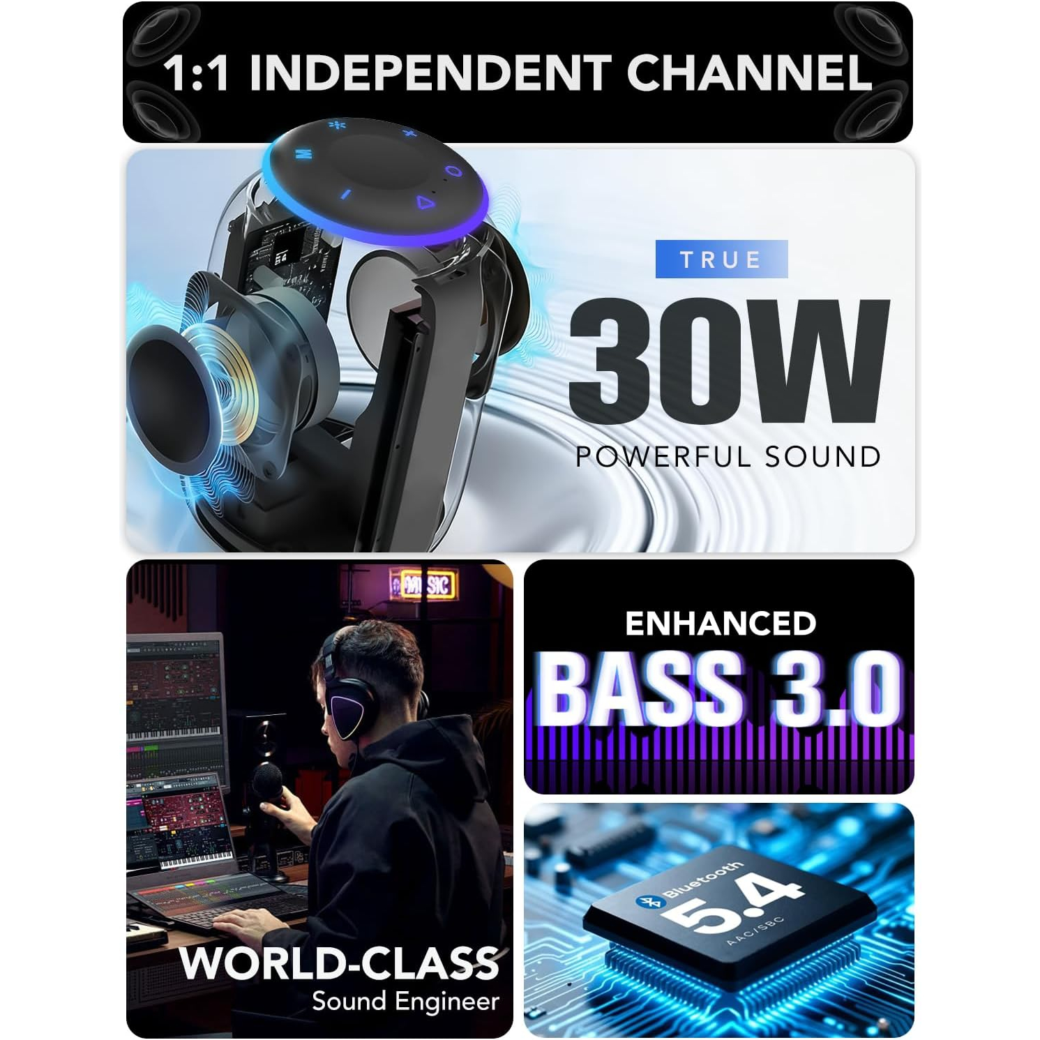 Güçlü Bluetooth hoparlör çıkış gücü 30 W'a kadar çıkar ve hoparlörün yeterli ses çıkışına sahip olmasını sağlar.