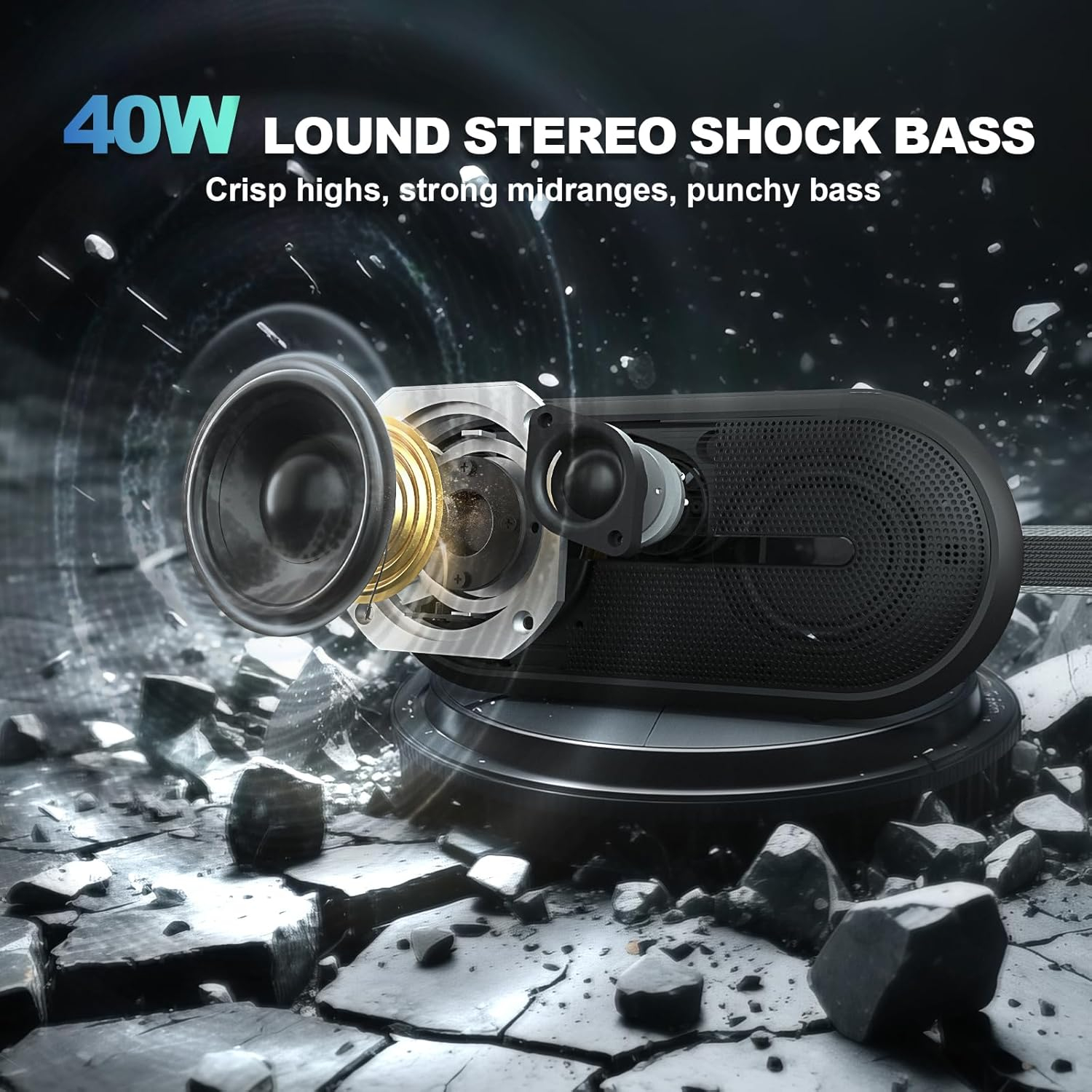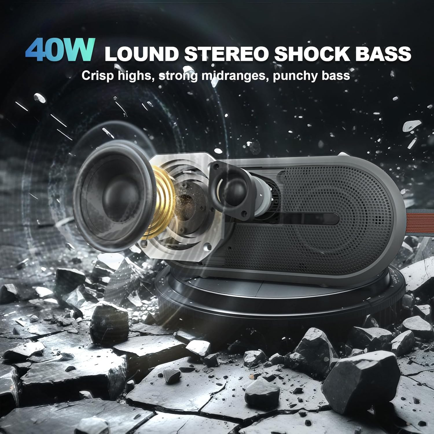 Bas güçlendirici bas hoparlörleri ve tweeter'larla donatılmış kablolu bluetooth hoparlörlerimiz, her yerde sürükleyici müzik için yankılanan baslar, kristal netliğinde tizler ve 40 W bas destekli stereo ses sunar.