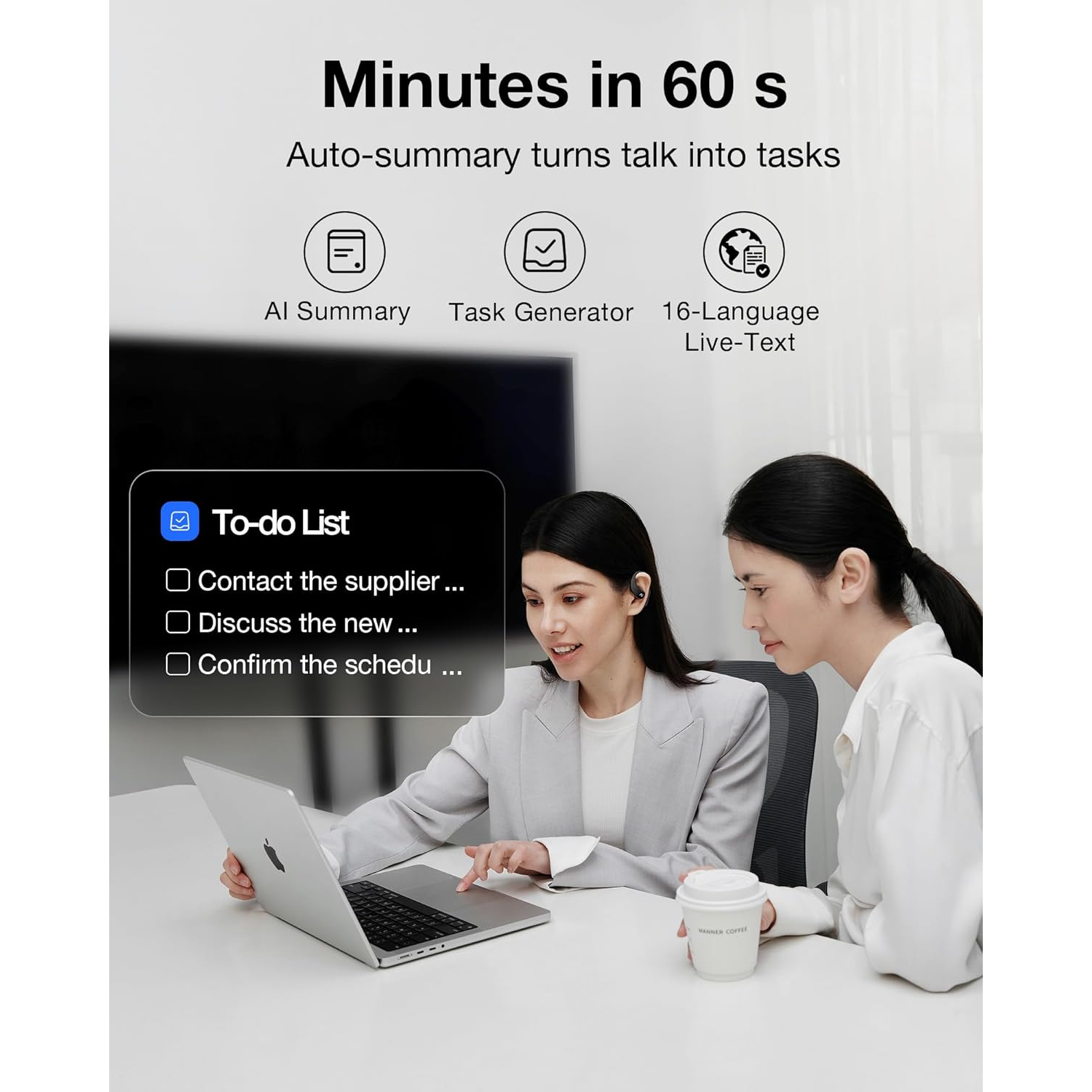 viaim OpenNote yapay zeka ses kayıt cihazı kulaklıkları, hızlı takip için düzenli yapılacaklar listeleri ve özetler oluşturur.