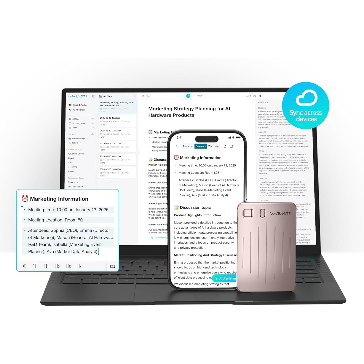 WaveNote AI ses kayıt cihazı, iş toplantılarından müşteri görüşmelerine, akademik derslerden gazetecilik röportajlarına kadar her türlü kayıt senaryosuna kusursuz bir şekilde uyum sağlar.