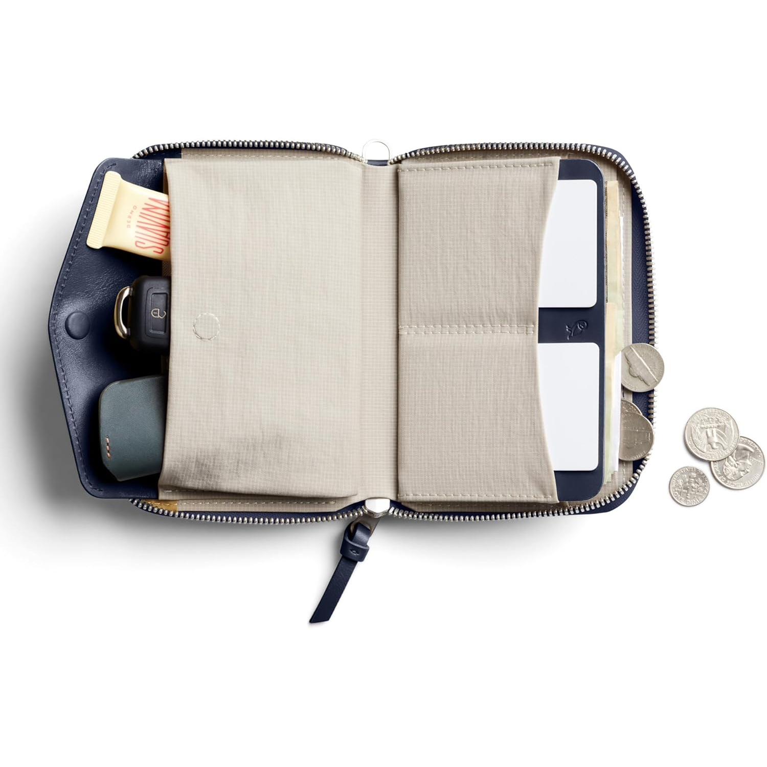 Dudak parlatıcısı, anahtarlık ve araba anahtarı gibi büyük eşyalar için geniş kapasiteli iç cep.