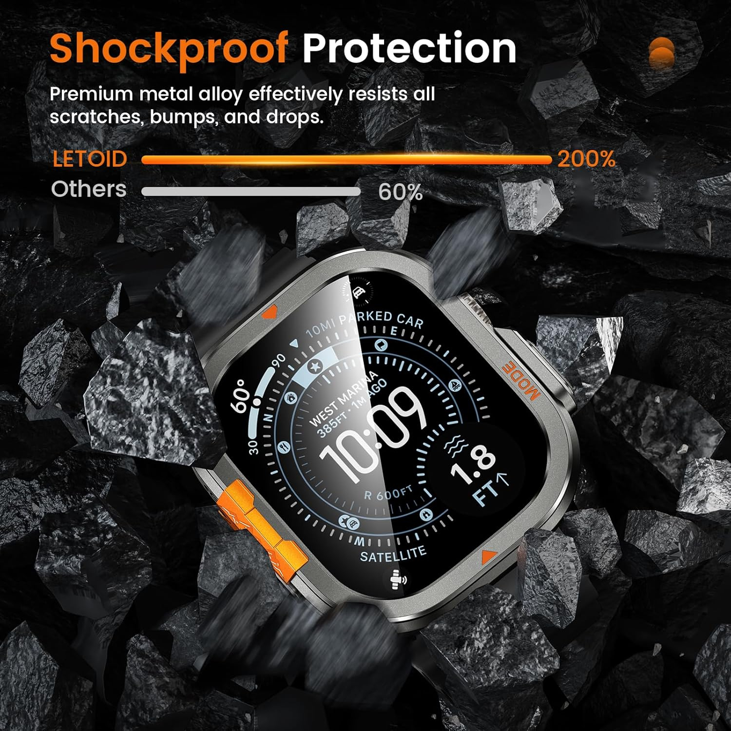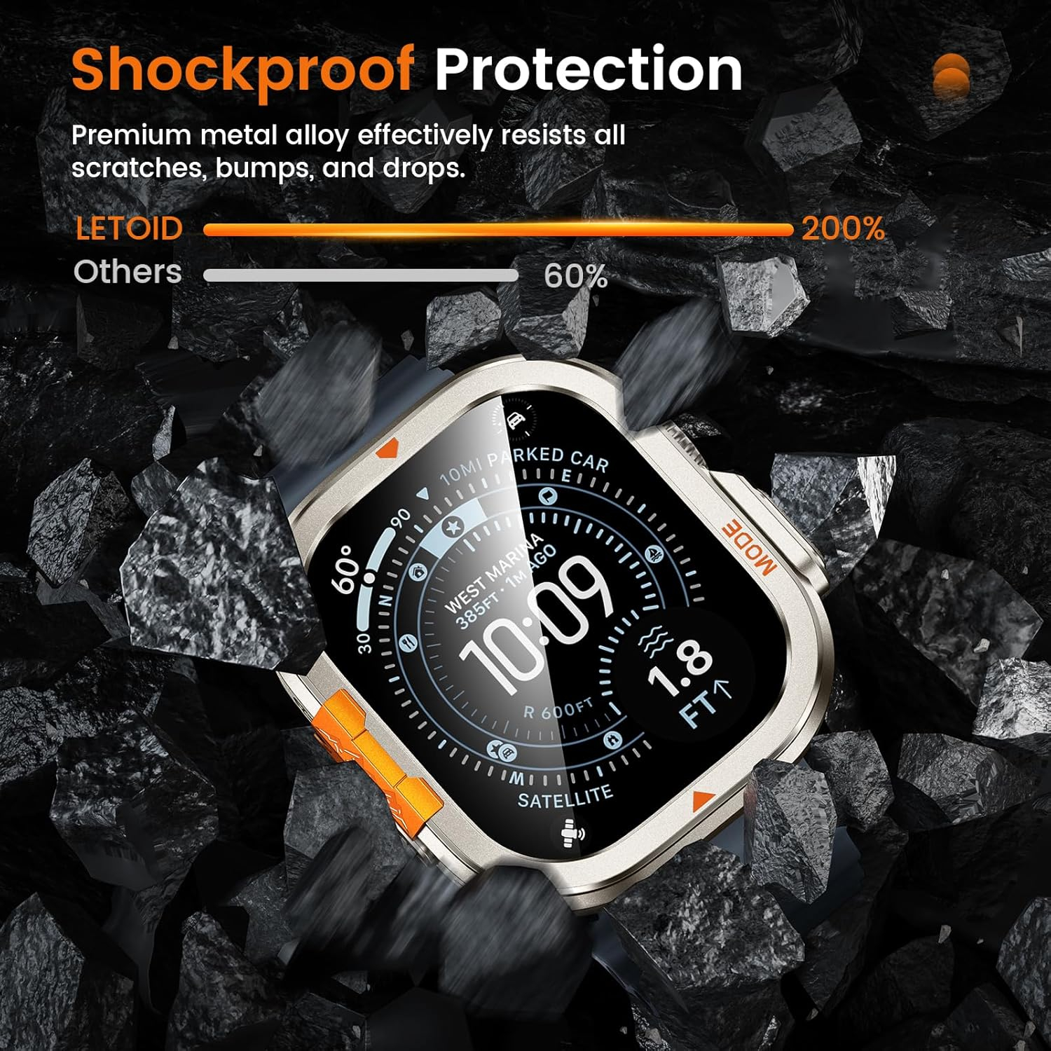 Metal kasa, arka kapak ve ekran koruyucudan oluşan üçlü yapı, Apple Watch Ultra'nızı darbelere ve düşmelere karşı kapsamlı bir şekilde korur.