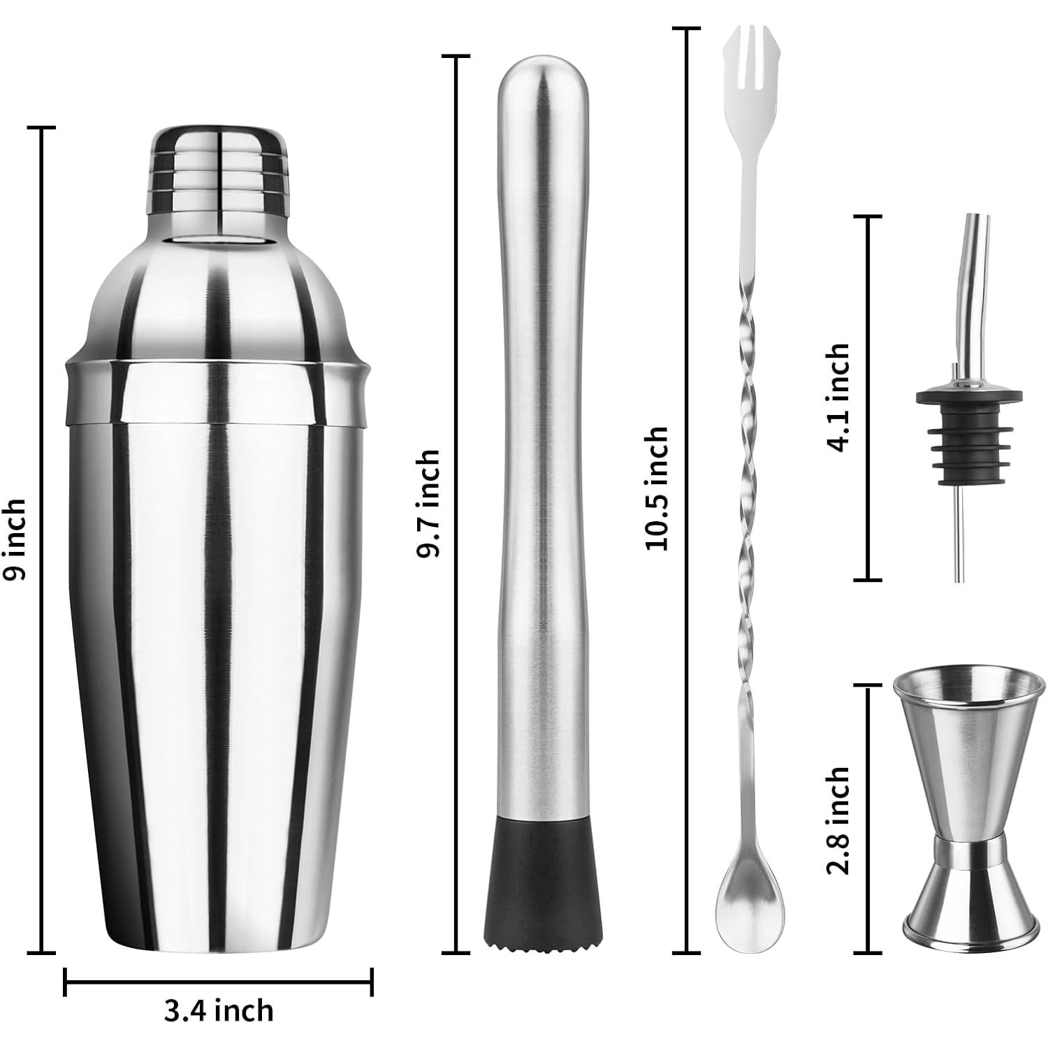 5 Parçalı Profesyonel Kokteyl Çalkalayıcı Seti - Ohtomber bar aletleri, bir bar alet seti için tüm ihtiyaçlarınızı karşılayacak eksiksiz bir settir. 24 oz/750 ml paslanmaz çelik kokteyl çalkalayıcı, bir karıştırıcı, barmenlik için çift taraflı bir ölçü kabı (1,0 oz/0,5 oz), bir içki şişesi dökücü ve bir bar kaşığından oluşur; bu da yeni başlayanlar veya amatör miksologlar için kullanımını kolaylaştırır. - Uzun Ömürlü - Ohtomber'ın barmenlik çalkalayıcıları, uzun ömürlü olmaları için birinci sınıf paslanmaz çelikten üretilmiştir. Cam içecek şişeleri gibi asla kırılmazlar.