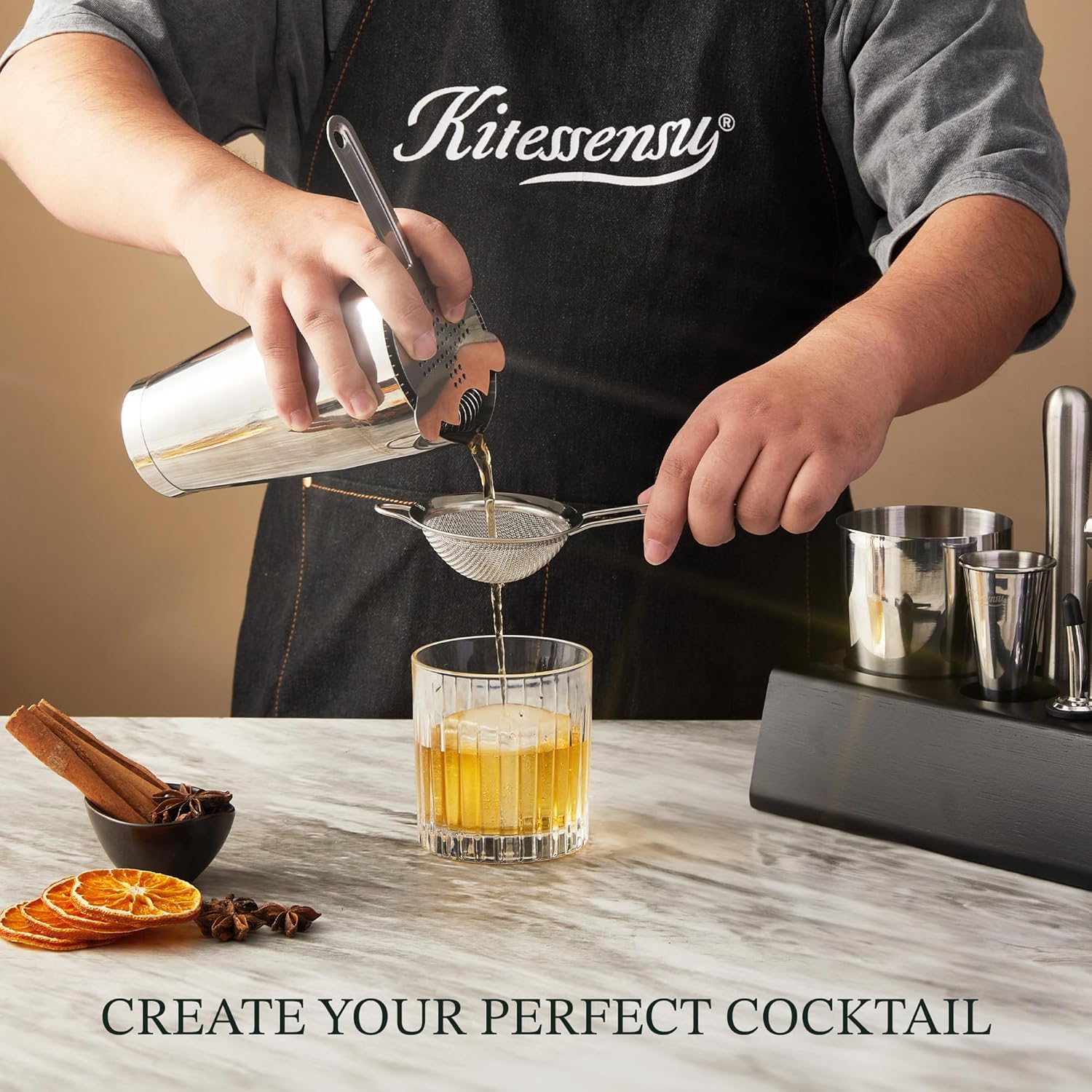 Usta Barmenler İçin Profesyonel Set: KITESSENSU kokteyl çalkalayıcı seti, ev barı tutkunları için tasarlanmıştır. İnce gözenekli süzgeç ve Hawthorne süzgecinin yanı sıra normal bir kokteyl setinde bulamayacağınız narenciye aletlerinin yanı sıra Boston çalkalayıcı, ezici, hassas dökücüler, bar kaşığı ve tirbuşon gibi temel aksesuarları da içerir. Bu set, çalkalama, karıştırma ve tirbuşon gibi hassas ve yetenekli bar kalitesinde kokteyller hazırlamanıza yardımcı olur.