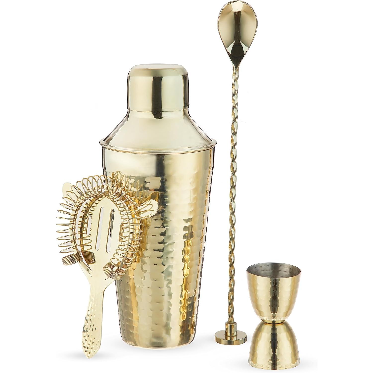 Paslanmaz Çelik - TEMEL KOKTEYL YAPIM ARAÇLARI Bu 4 parçalı bar seti, ayakkabıcı tarzı bir çalkalayıcı, Hawthorne süzgeci, çift ölçü kabı ve margarita, mojito, viski ekşisi, eski moda ve espresso martini hazırlamak için aynı zamanda karıştırıcı olarak da kullanılabilen bir bar kaşığı içerir. - EV BAR TEMELLERİ İÇİN MÜKEMMEL Mutfak bar kurulumları, veranda eğlenceleri, açık hava bar istasyonları ve ev bar arabası aksesuarları için ideal miksoloji barmen seti. Arka bahçe barbeküleri, yaz partisi etkinlikleri, oyun geceleri ve hafta sonu etkinlikleri için harika.