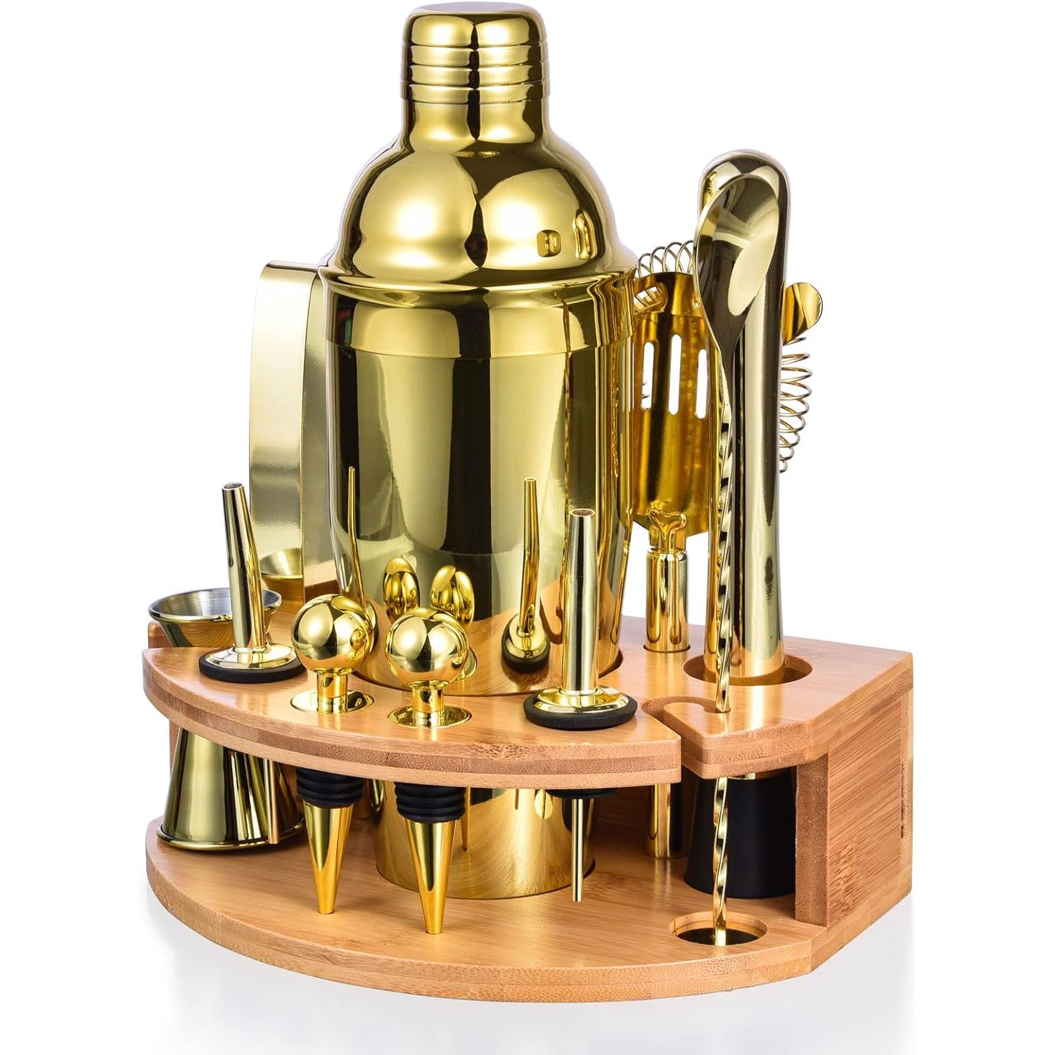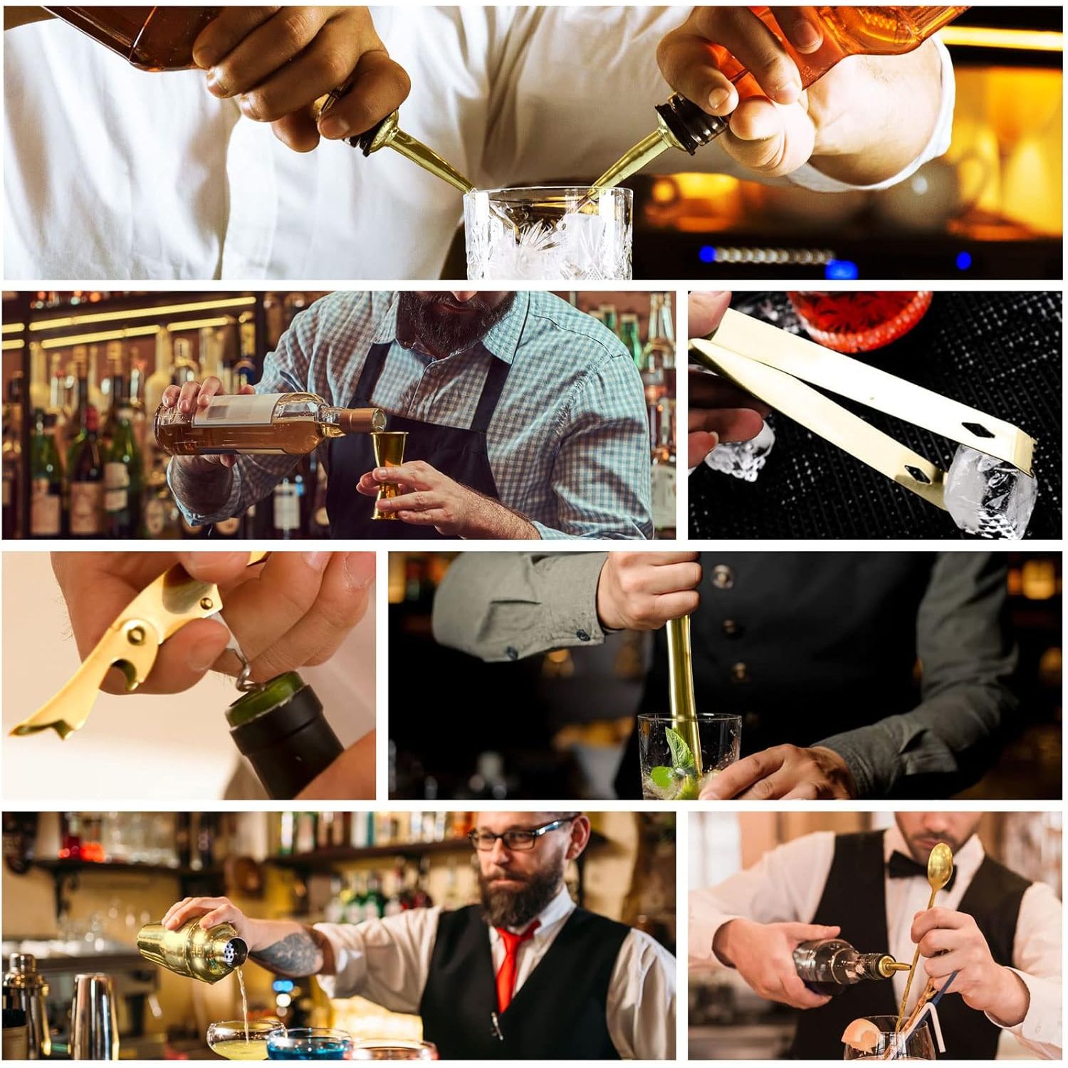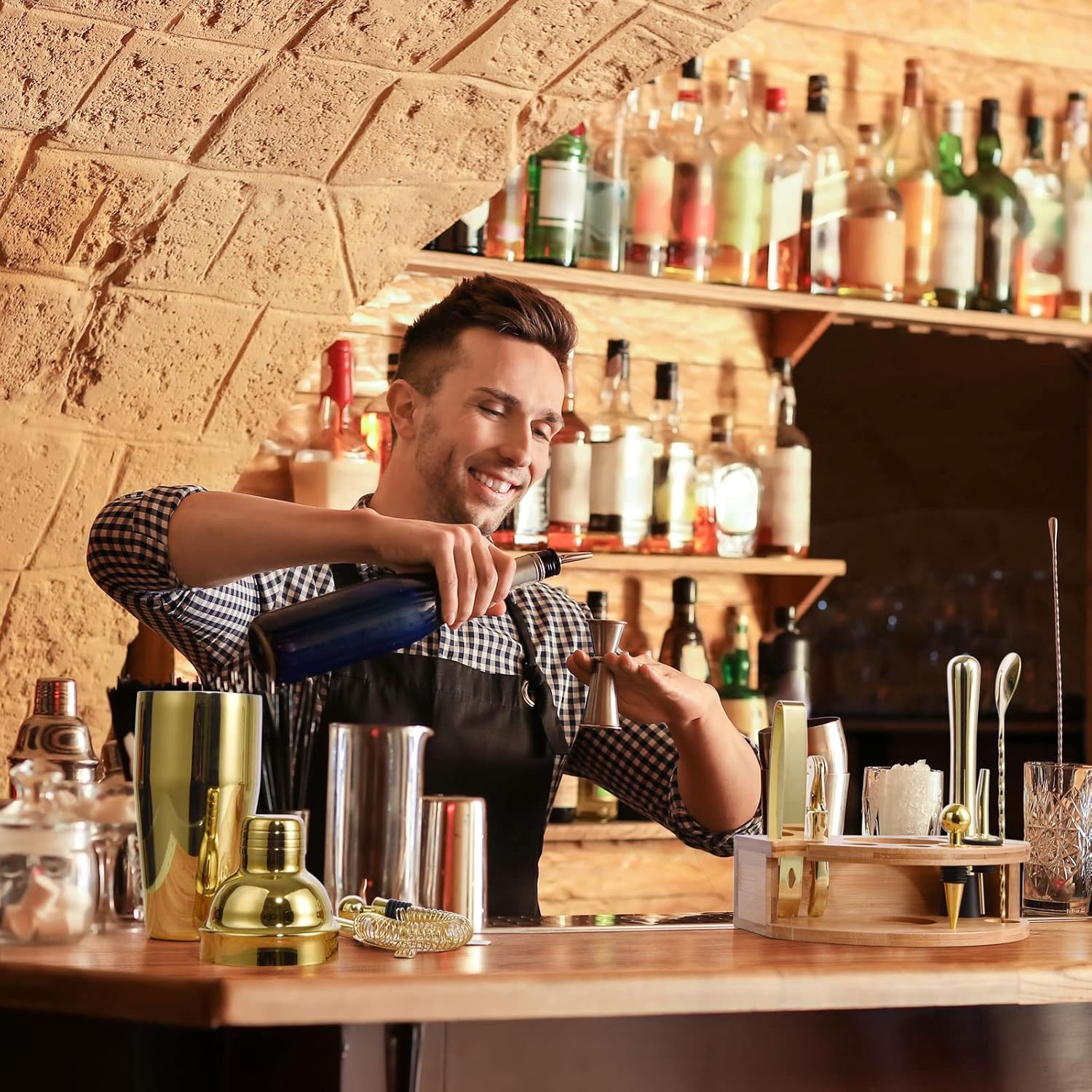 Profesyonel Bar Sergileme Aracı: 12 parçalık kokteyl çalkalayıcı seti, diğer gereksiz bar aksesuarı satın alma ihtiyacını ortadan kaldıracak kadar temel aksesuara sahiptir. İster evde, ister barda veya partide olsun, profesyonel bir barmen olmanızı ve lezzetli kokteylleri kolayca hazırlamanızı sağlar. - Kolay Saklanır - Şık Bambu Stand: Benzersiz yarım daire şeklindeki bambu stand, bar masanızı çok düzenli ve şık hale getirir. Mutfaktaki çekmeceler ve dolaplar artık dağınık değil.