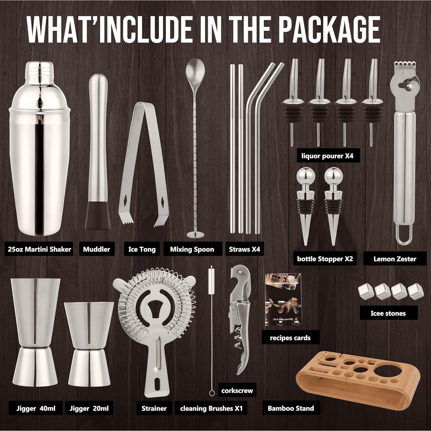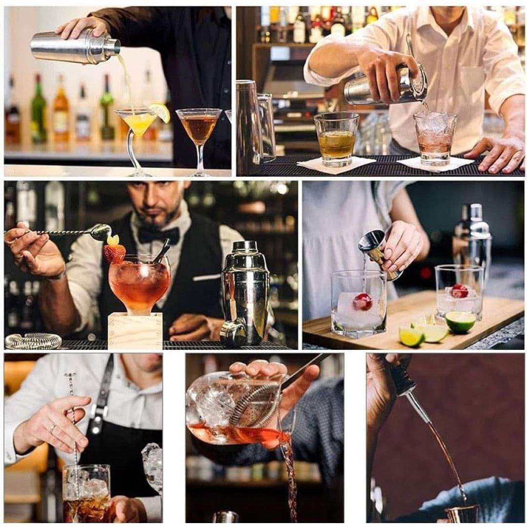 Yüksek Kaliteli Malzemeler Kokteyl martini çalkalayıcı seti, dayanıklı, sızdırmaz, hafif, çizilmez, paslanmaz ve deforme olmayan birinci sınıf 304 paslanmaz çelik malzemeden üretilmiştir. Bar çalkalayıcı seti barmen setimiz, ılık sabunlu suyla elle kolayca temizlenebilir ve parlaklığını korur. Bu kokteyl seti ile en sevdiğiniz içeceklerin tadını çıkarın - 26 Parça Set (İhtiyacınız Olan Her Şey) Kokteyl mikser seti, tüm ihtiyaçlarınızı karşılayacak şekilde tasarlanmıştır.