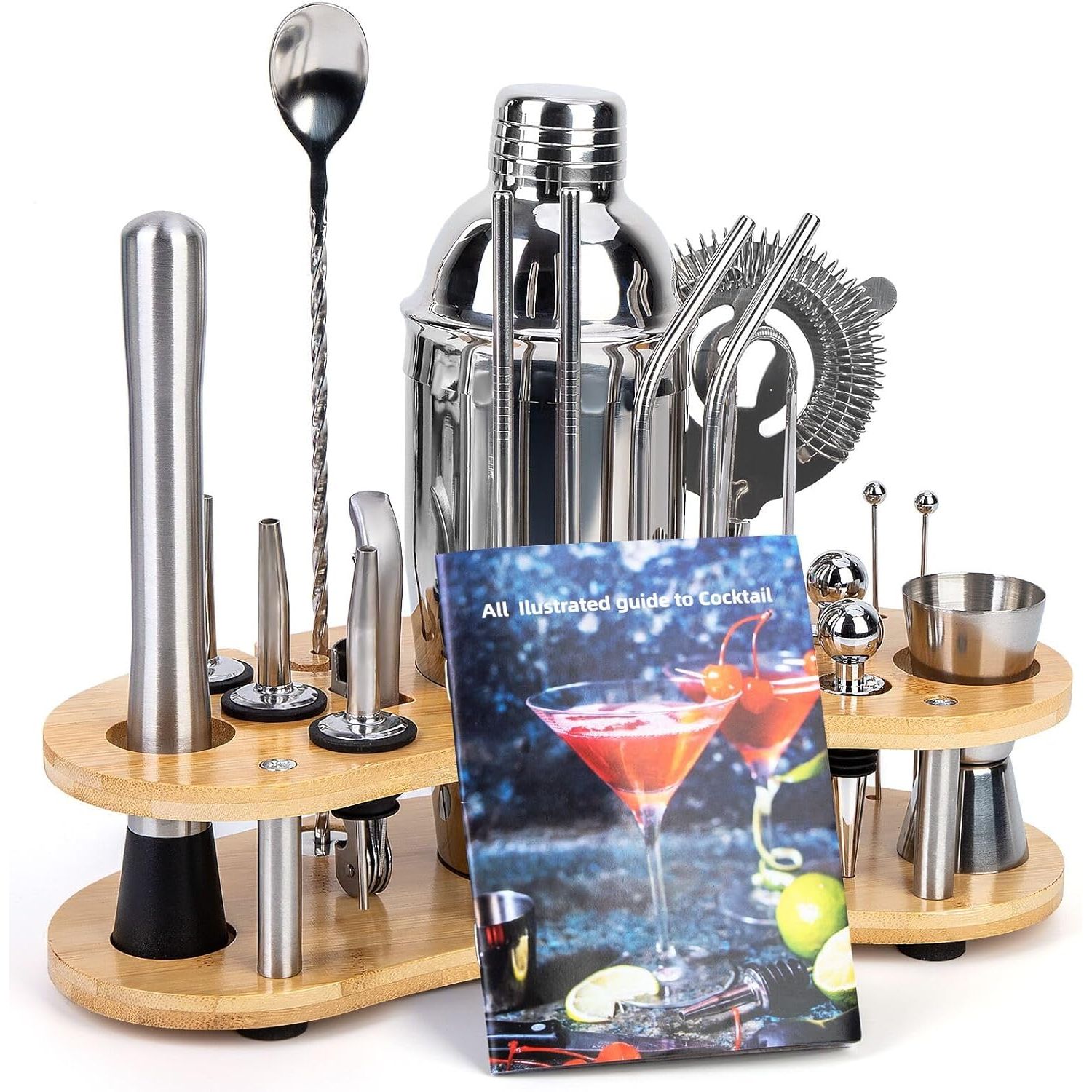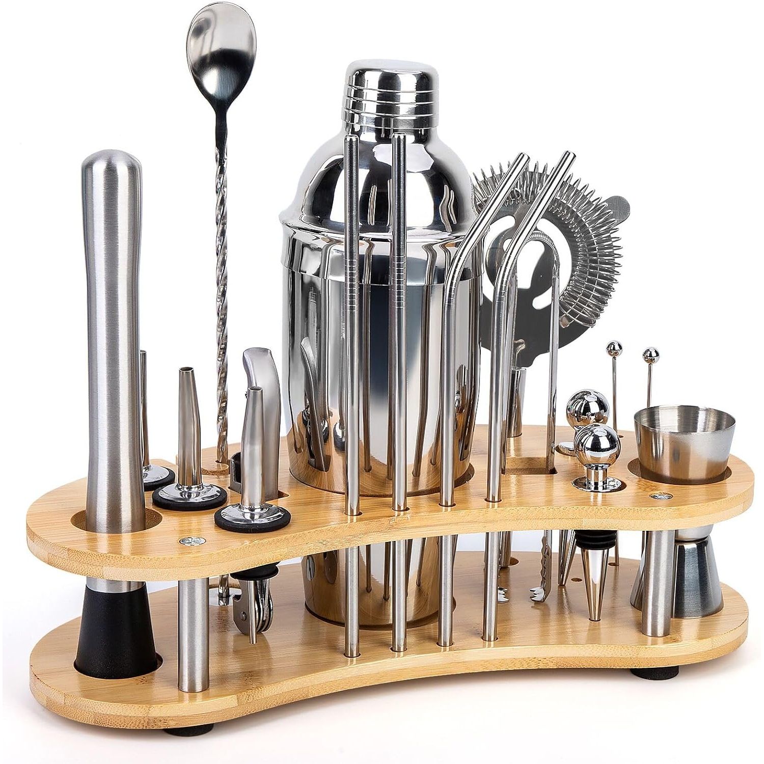 Barmenler için olmazsa olmaz: Bu kokteyl çalkalayıcı setimiz, bir barmen için gerekli tüm araçları içerir, özellikle kokteyl severler için özelleştirilmiştir, zarif ve benzersiz yay şeklindeki braket, pratik, temiz ve güzel, ister evde, ister barda veya partide olsun, misafirler için etkileyici ve lezzetli kokteylleri kolayca karıştırabilirsiniz - 18/8 derece paslanmaz çelik: Profesyonel barmen seti, kokteyl seti aksesuarları yüksek kaliteli ve dayanıklı paslanmaz çelikten yapılmıştır, kalınlaştırma ve parlatma işleminden sonra kalıcı paslanmaz, aşınmaya dayanıklıdır.