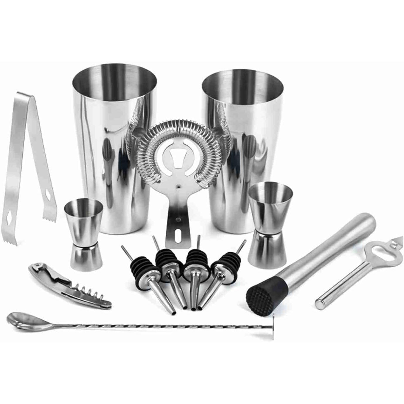 Profesyonel Sınıf Barmen Seti: Barmen Seti Bar Seti, mojito, martini veya viski bazlı içecekler gibi kokteyller hazırlamak için tasarlanmış paslanmaz çelik çalkalayıcılar, çift taraflı ölçü kapları ve dökücüler gibi 14 temel araç içerir. - Uzun Ömürlü Paslanmaz Çelik Kokteyl Çalkalayıcı Seti: Kokteyl Çalkalayıcı Seti, sık kullanımda bile parlaklığını koruyan 304 paslanmaz çelikten üretilmiştir. Barmen seti bar seti buz kırıcı, karıştırma kaşığı ve süzgeç, günlük hazırlıkları idare edecek şekilde tasarlanmıştır.