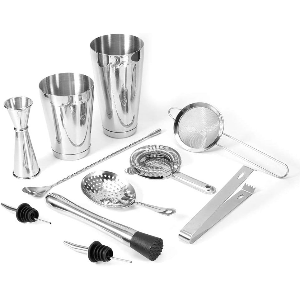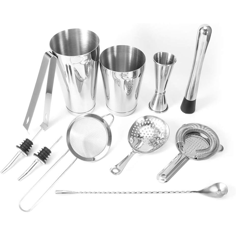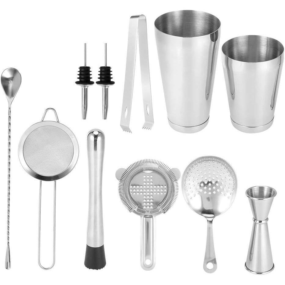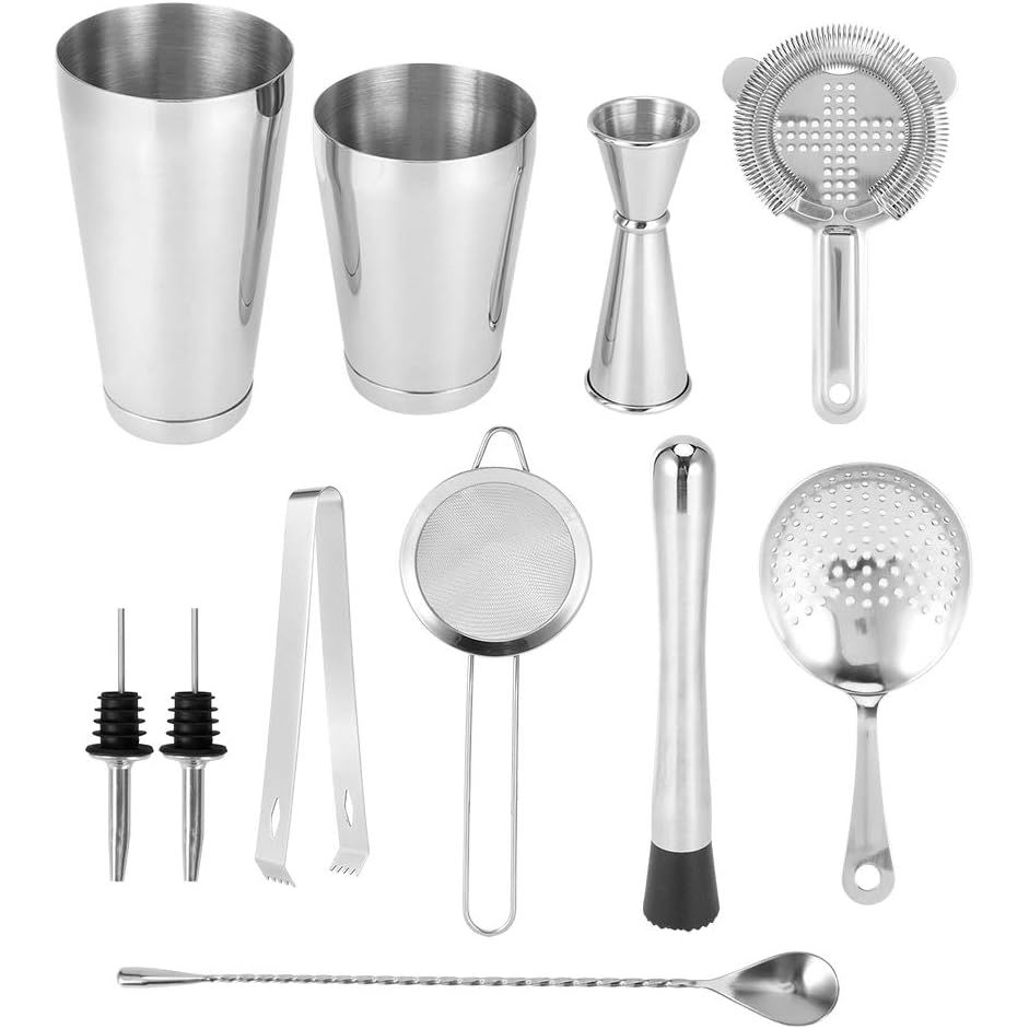 Elektrokaplama işlemi, yüksek parlaklık, yüksek sertlik, iyi korozyon direnci ve dayanıklılık. - Kokteyl bardakları, ölçü kabı, filtre kaşığı, buz kelepçesi, şarap dökücü, süzgeç, buz süzgeci, buz çubuğu ve karıştırma kaşığı içerir. - Çok işlevli barmenlik aleti, gıda sınıfı 430 paslanmaz çelik kullanır, dayanıklı ve kokusuzdur, güvenle kullanılabilir. - İç duvar, aşınmaya dayanıklı, kullanımı kolay ve kiri gizlemeyen zımparalama ve fırçalama işlemini benimser.
