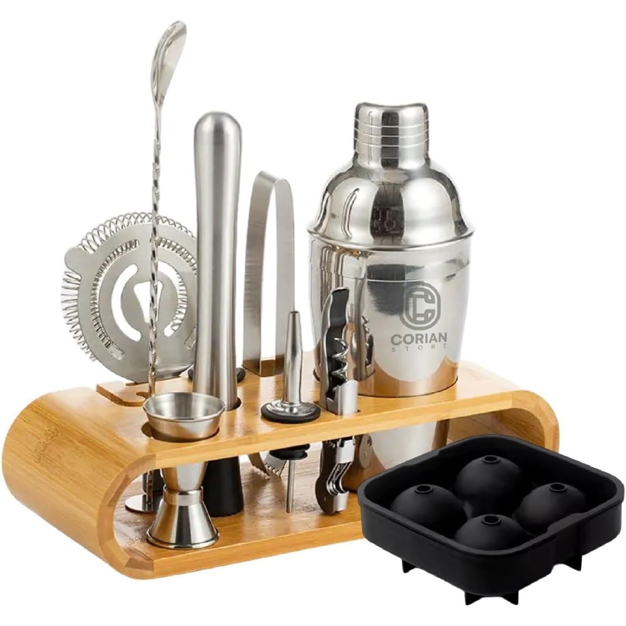 [HEPSİ BİR ARADA BARMEN SETİ] Bu eksiksiz kokteyl çalkalayıcı seti, tüm temel bar aksesuarlarını içerir: martini çalkalayıcı, ölçü kabı, süzgeç, ezici, bar kaşığı ve likör dökücü; evde profesyonel içecekler hazırlamak için ihtiyacınız olan her şey. - [PREMIUM KALİTELİ BAR ALETLERİ] Dayanıklı paslanmaz çelikten üretilen bu barmen seti, uzun ömürlü performans ve her bar arabası veya tezgahta muhteşem görünen cilalı bir yüzey sağlar. - [BUZ TOPU KALIBI BONUSU] 4 yuvarlak buz topu için silikon kalıp, sofistike bir görünüm katar.