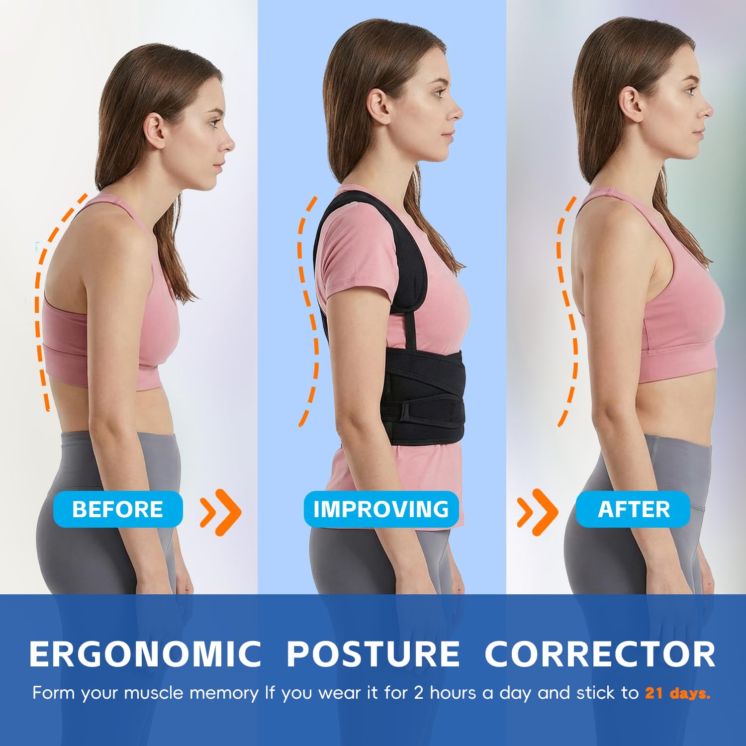3'ü 1 arada Güvenilir Destek Duruş düzeltici ürünümüz, sırt ve omuz rahatsızlıkları, omurga hizalaması, kamburluk ve kötü duruş sorunlarına yardımcı olmak üzere tasarlanmış olağanüstü bir destek sunar. Ayarlanabilir omuz ve bel kayışı sistemi ve destekleyici çubuklarıyla duruşunuzu rahatça düzeltmenize yardımcı olur. Ergonomik tasarımı, koltuk altlarınıza baskı yapmadan gerilimi azaltır ve nefes alabilen file malzeme serin kalmanıza yardımcı olarak günlük kullanım için idealdir.
