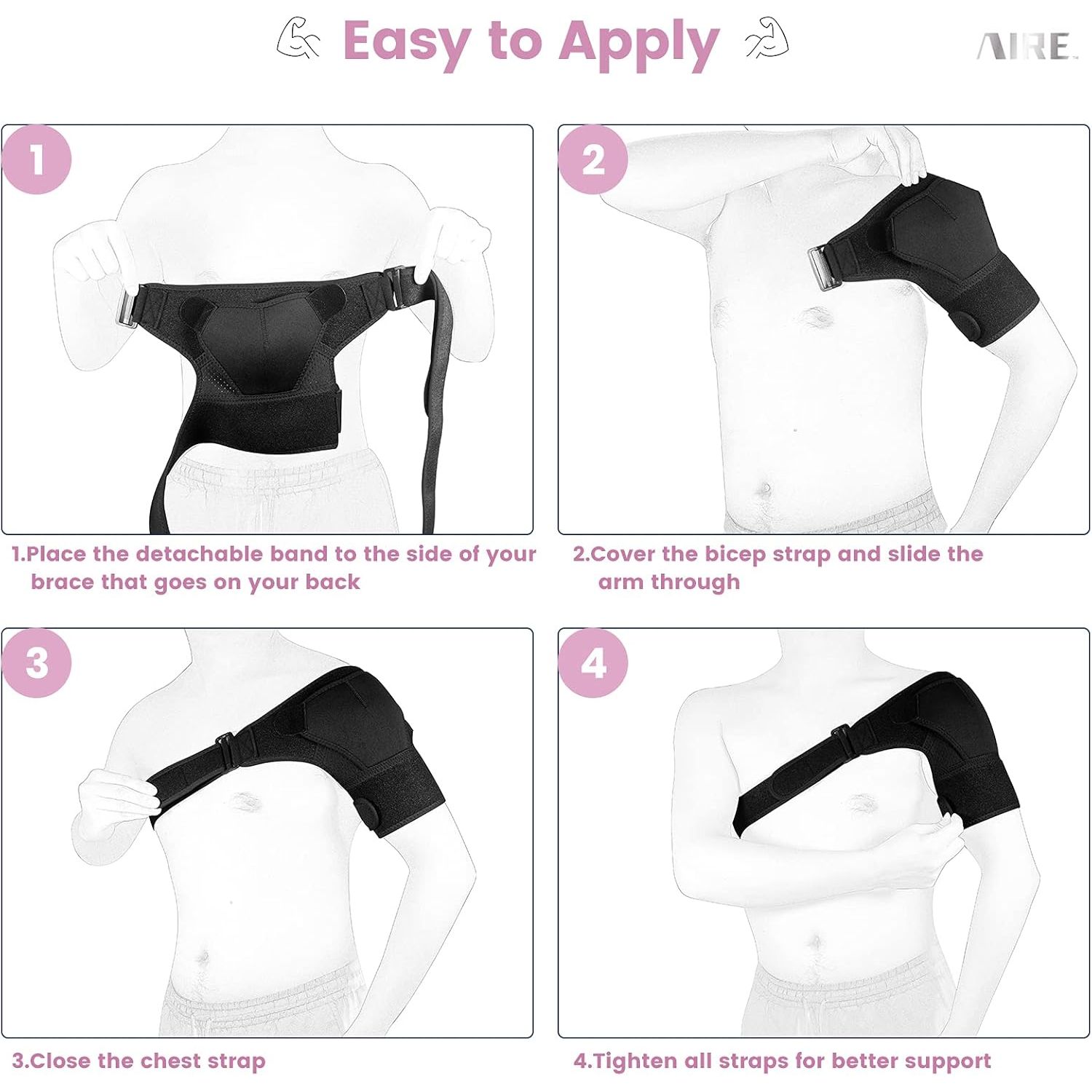 Ağrıyı Önemli Ölçüde Azaltır AIRE omuz desteği, güçlü, terapötik kompresyon ve güvenilir ve istikrarlı destek sağlar. Desteği takarak, rotator manşet, omuz çıkığı, AC eklem yaralanması, bursit, yarık dudak, omuz ağrısı, burkulma, hassasiyet, tendinit, artrit gibi yaygın yaralanmalardan kaynaklanan ağrıların hafiflediğini hissedebilirsiniz.