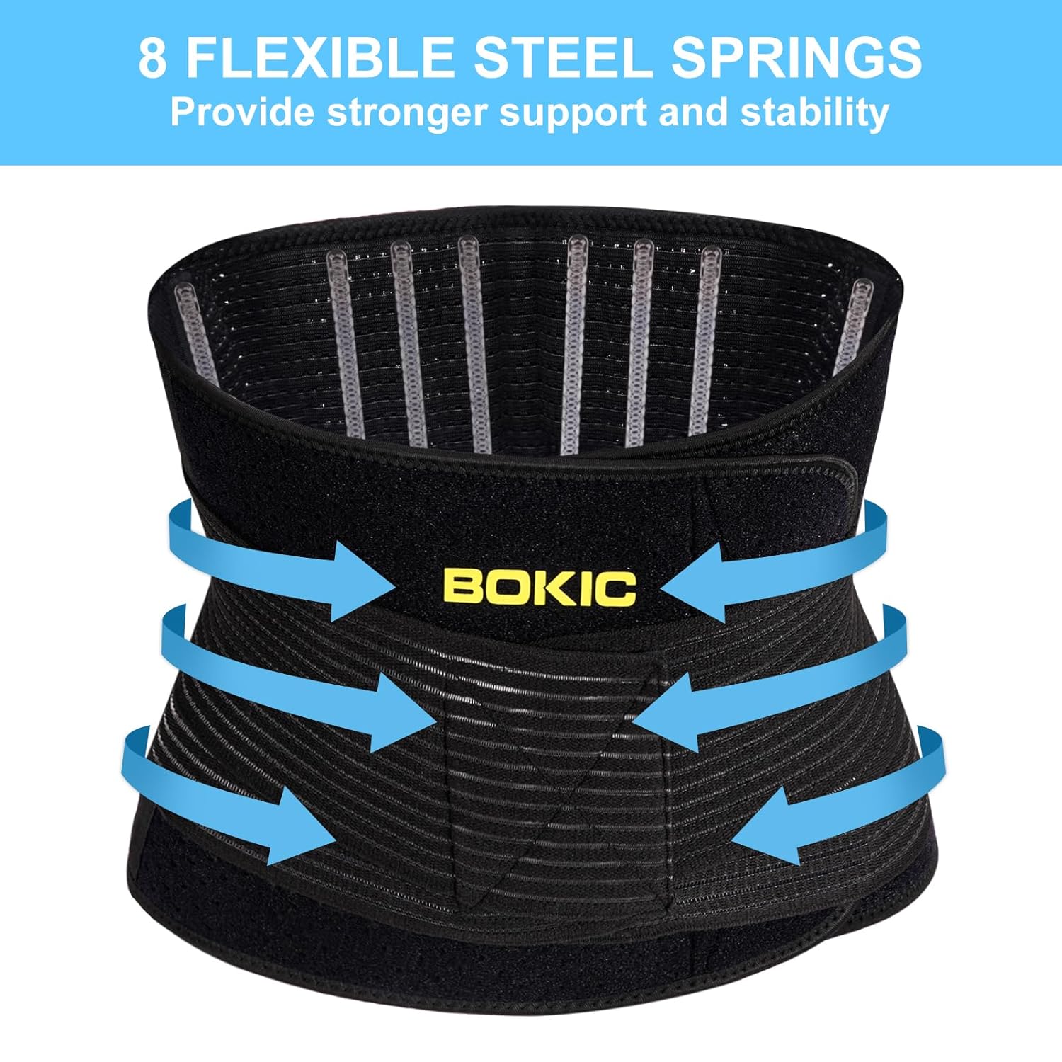 BOKIC erkek ve kadın sırt destek kemeri, 10 inç genişliğinde olup karın ve bel bölgeniz için yeterli koruma sağlar. BOKIC sırt korsesi, karnınızı ve belinizi kolayca saracak kadar geniştir. Sırt destek kemerimiz, farklı bedenlere uyum sağlamak için daha geniş bir Velcro tasarımına sahiptir. Ekstra konfor için korsenin altına ince bir atlet giymenizi şiddetle tavsiye ederiz. BOKIC erkek ve kadın sırt korsesi, 8 adet dahili güçlendirilmiş deliğe sahiptir.