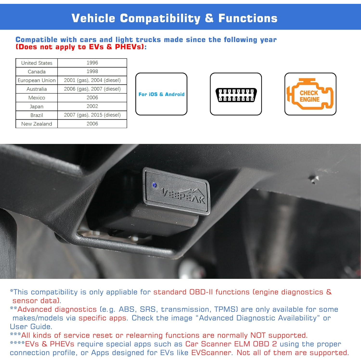 2000 ve sonrası üretilen çoğu OBD-II uyumlu otomobil ve hafif kamyonla çalışır.