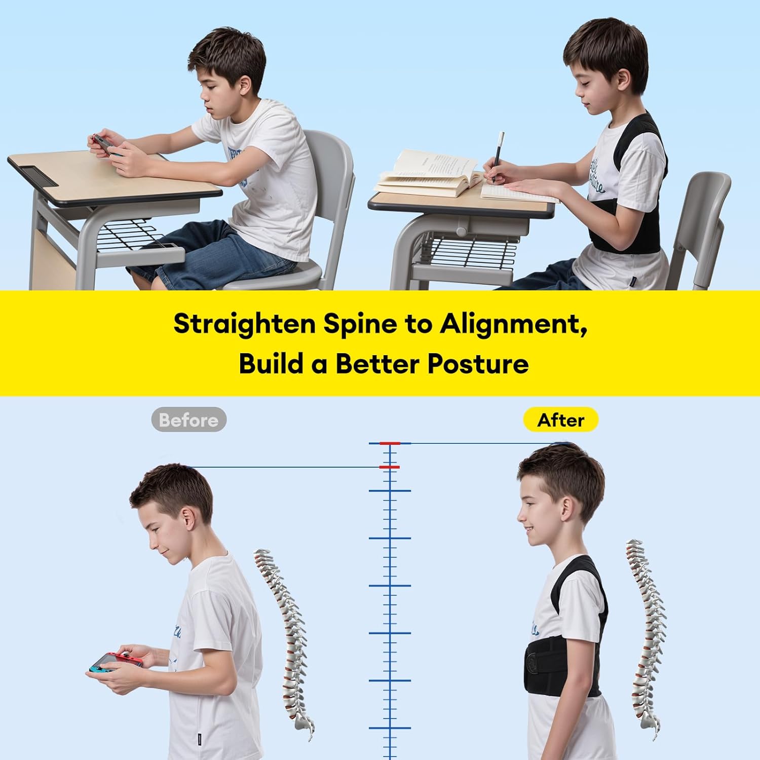 Lütfen satın almadan önce çocuğunuzun belini ölçün ve beden tablosuna göre bedeni seçin (Küçük beden 14 - 19 inç bel, Orta beden 18 - 22 inç bel, Büyük beden 23 - 27 inç bel, X-Large beden 26 - 31 inç bel, XX-Large beden 28 - 33 inç bel). (Bel ölçülerine yakınsa daha büyük bir beden seçin) Bu ayarlanabilir sırt desteği, ergonomik tasarıma sahip olup, sırtın üst ve alt kısmını 360 derece sararak duruşu düzeltir.