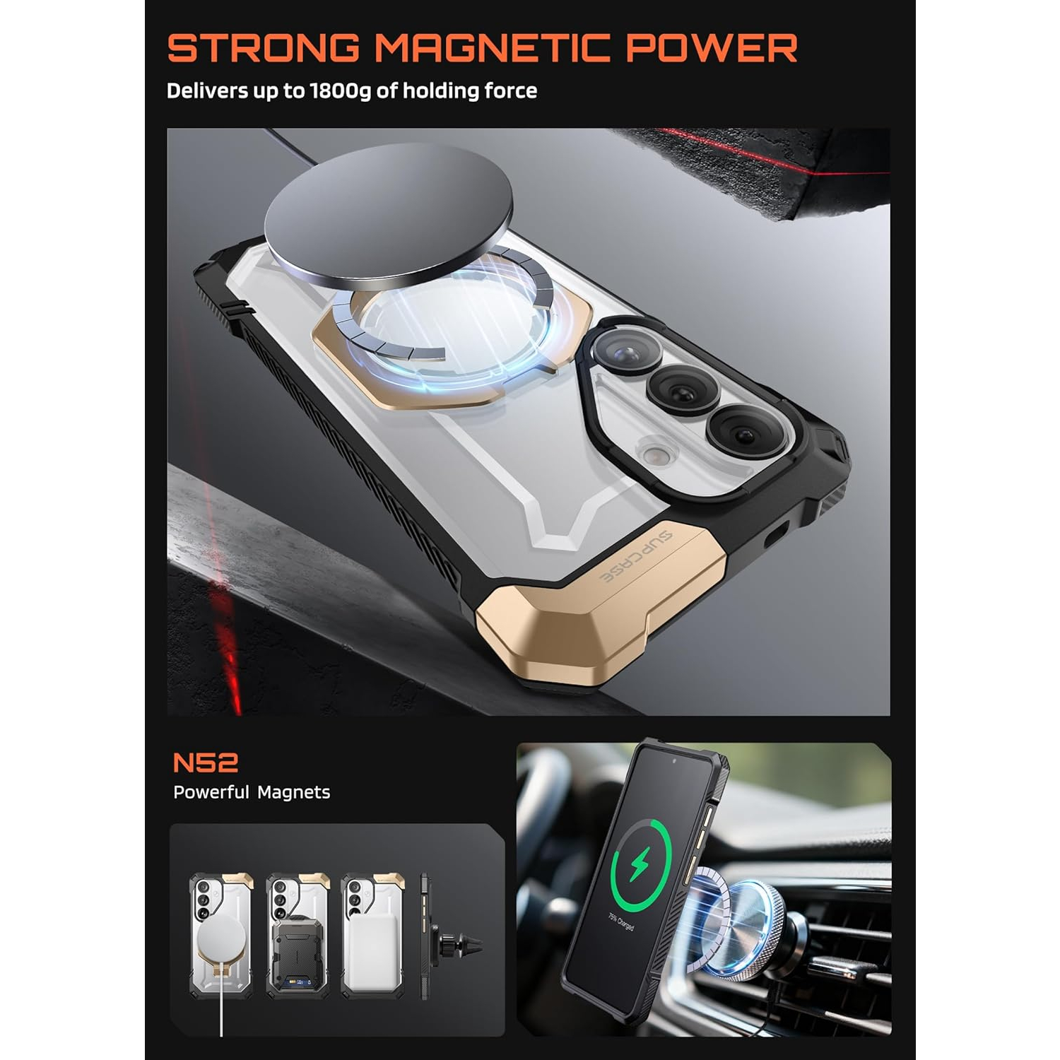 Hassas manyetik hizalama özelliği sayesinde istikrarlı kablosuz şarj sağlar. 1800 g'a kadar manyetik kuvvet sağlayan dahili N52 sınıfı mıknatıslarla donatılmıştır. Arka plaka kalınlığı yaklaşık 1,64 mm olup, manyetik araç tutucuları, MagSafe kablosuz şarj cihazları, manyetik kart tutucular ve masaüstü manyetik kablosuz şarj standları gibi MagSafe aksesuarlarıyla uyumludur.