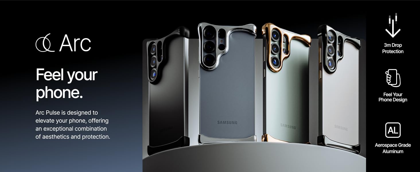 Samsung S26 Ultra için Minimalist Zırh – Galaxy S26 Ultra için tasarlanan Arc Pulse, ince ve şık bir formda en son teknolojiye sahip koruma sunar. Havacılık sınıfı alüminyum, dokunsal bir his ve zarif bir görünüm kazandırır.