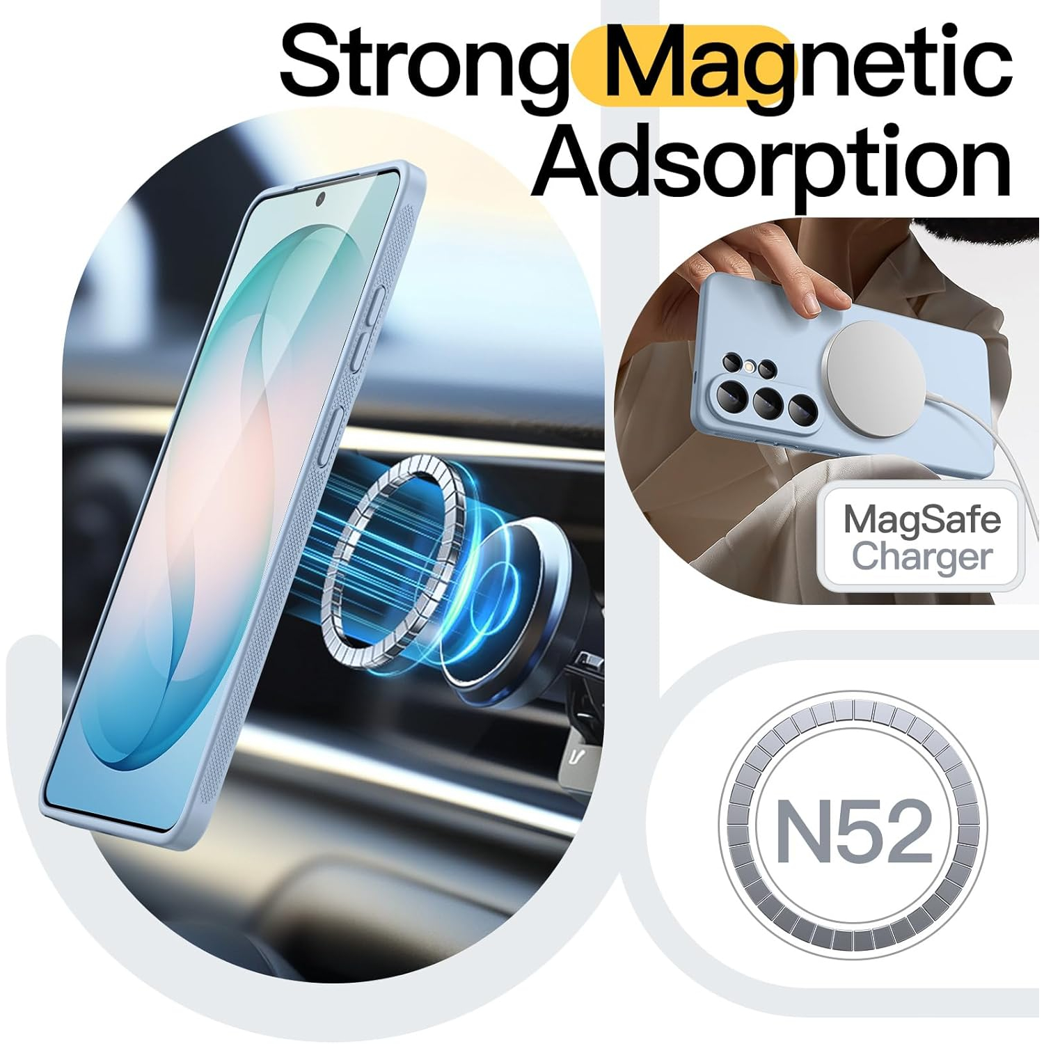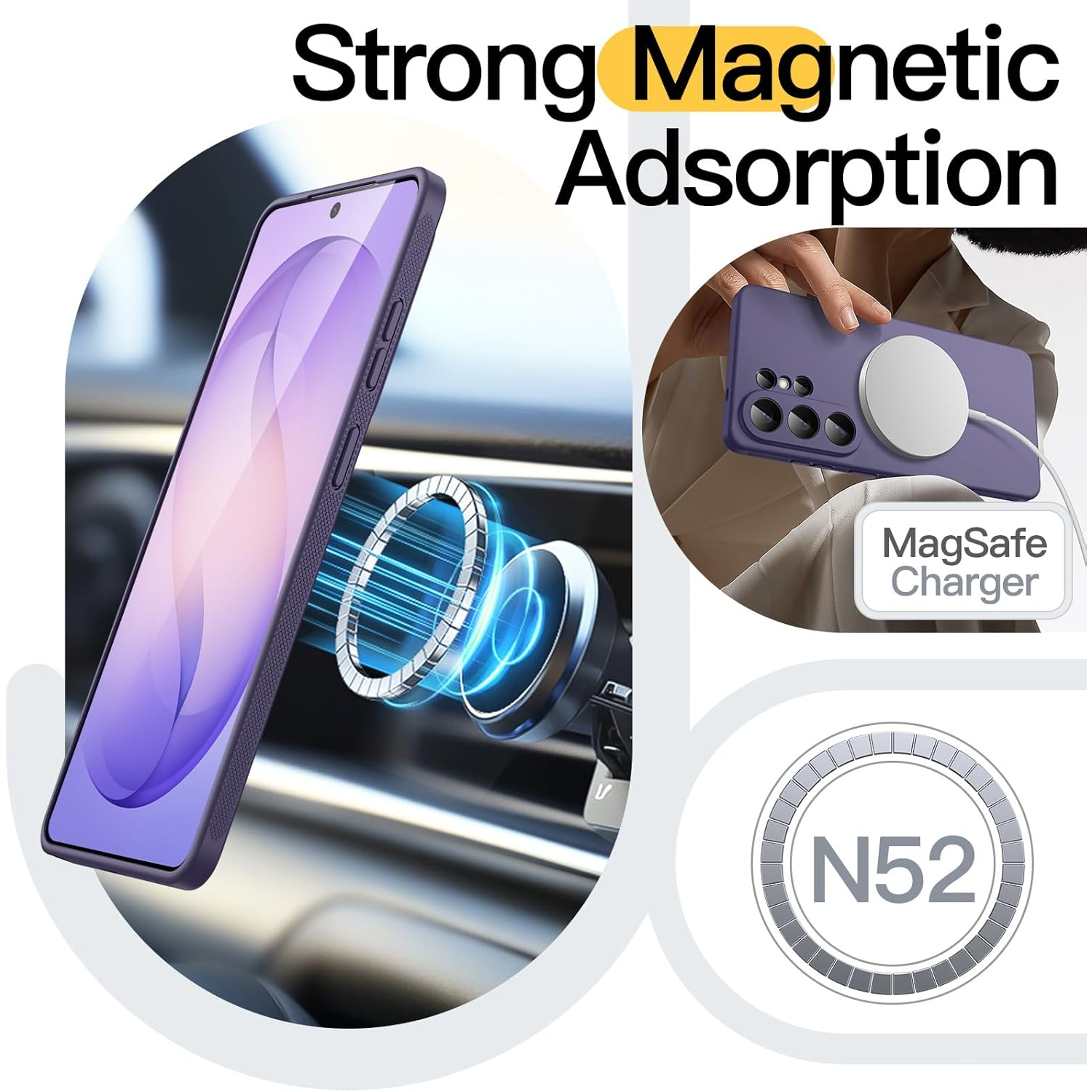 [Güçlü Manyetik Bağlantı] Mükemmel şekilde hizalanmış mıknatıslar, kablosuz şarjı her zamankinden daha hızlı ve kolay hale getiriyor. MagSafe aksesuarlarıyla uyumludur. Şarj etme zamanı geldiğinde, kılıfı telefonunuzda tutun ve şarj cihazınızı takın.