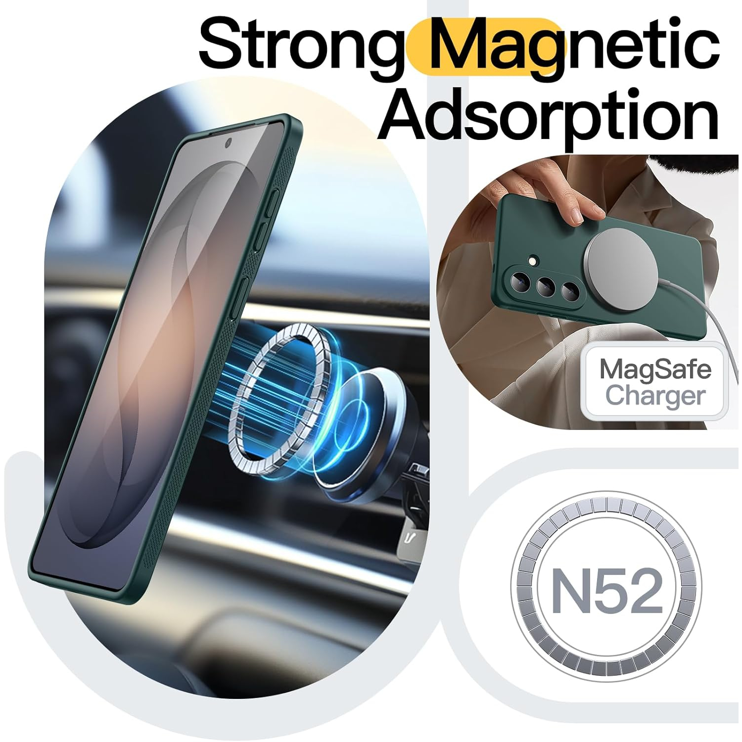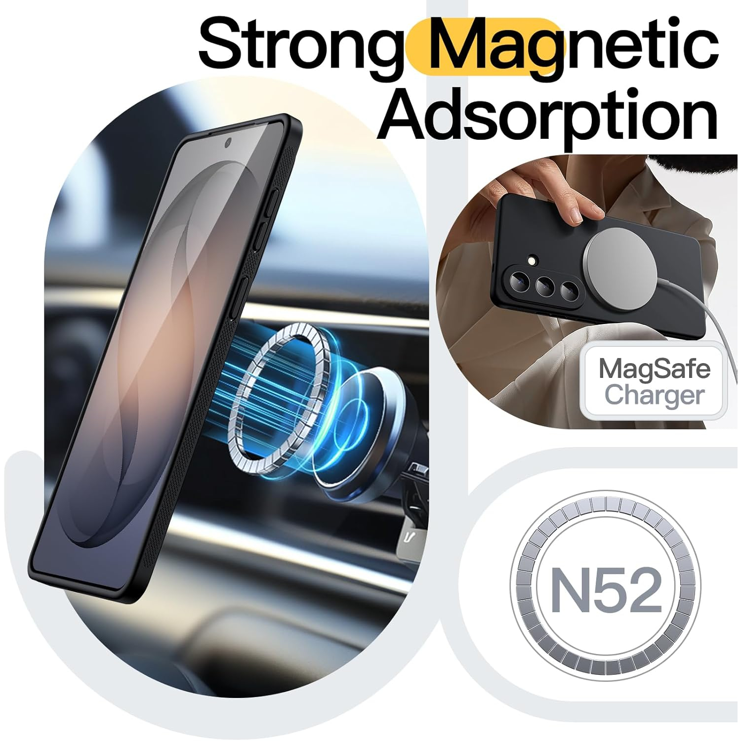 [Güçlü Manyetik Bağlantı] Mükemmel şekilde hizalanmış mıknatıslar, kablosuz şarjı her zamankinden daha hızlı ve kolay hale getiriyor. MagSafe aksesuarlarıyla uyumludur. Şarj etme zamanı geldiğinde, kılıfı telefonunuzda tutun ve şarj cihazınızı takın.