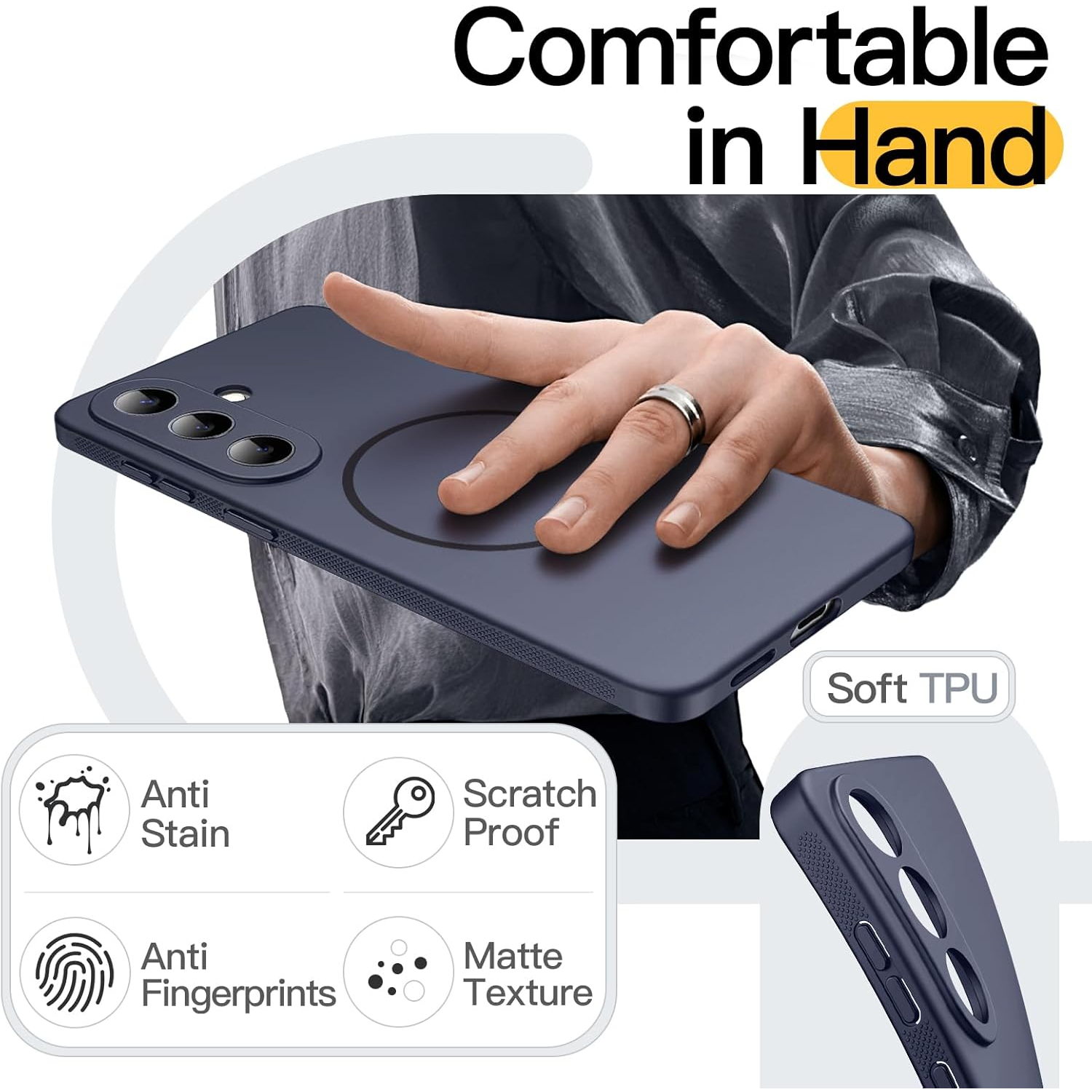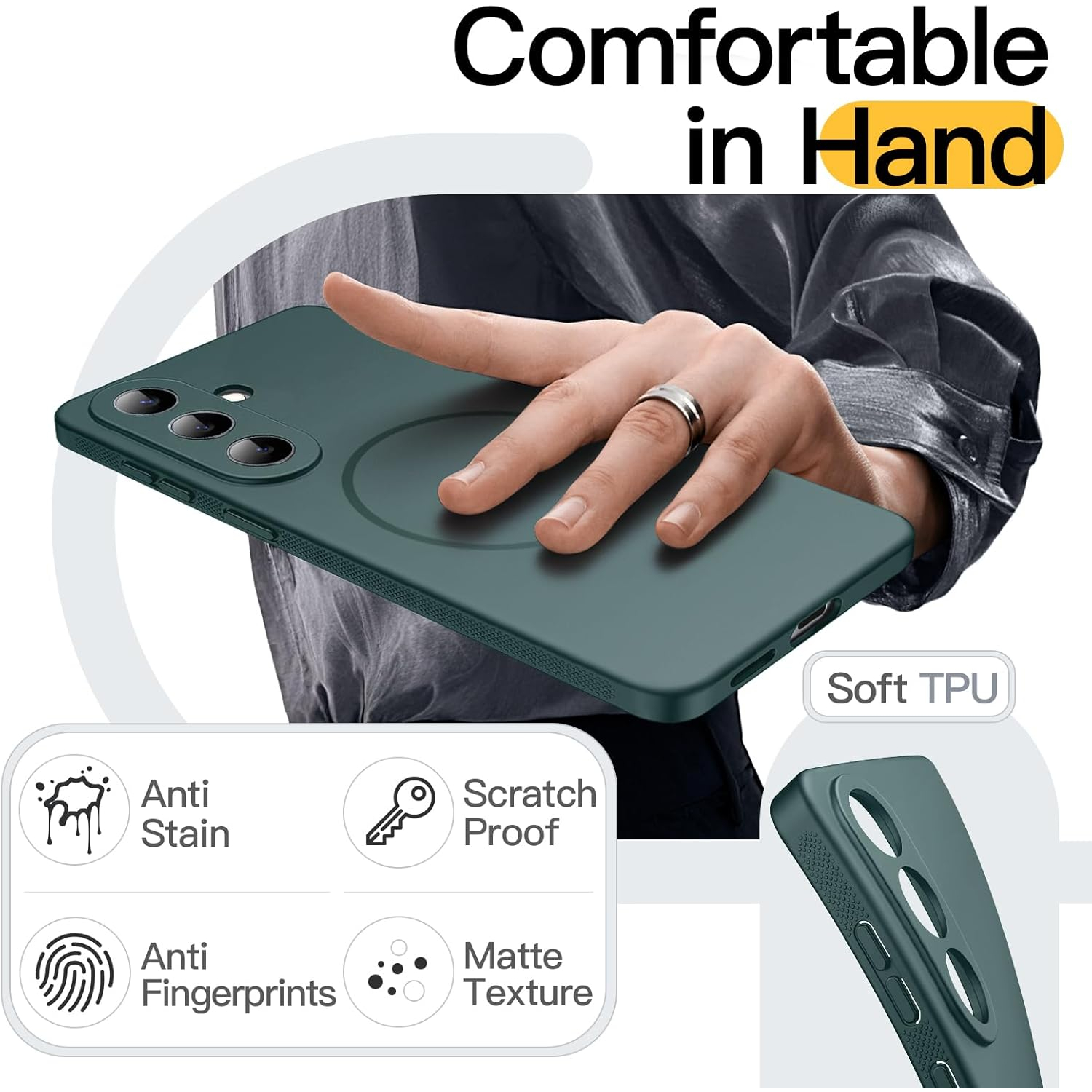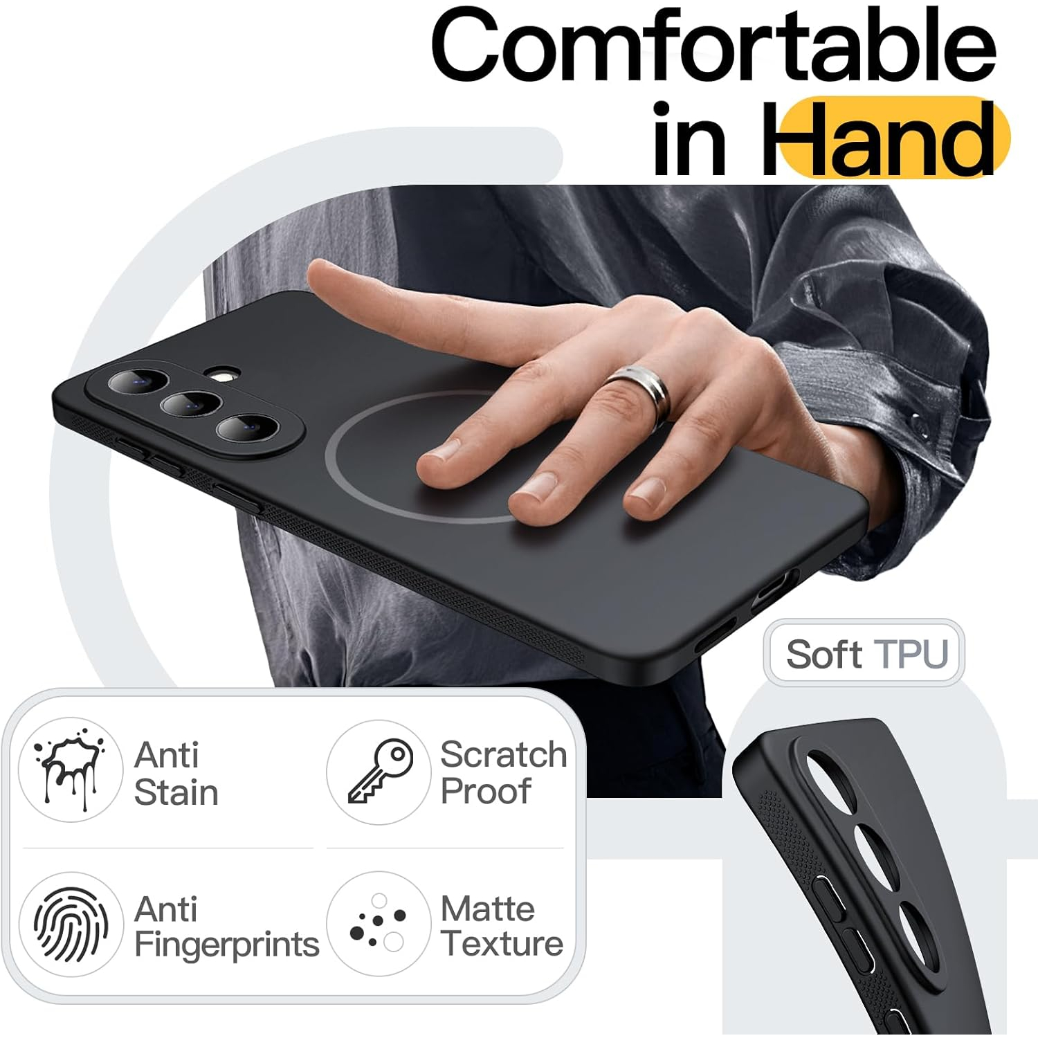 [İnce ve Darbeye Dayanıklı] Birinci sınıf esnek TPU malzeme, ince ve şık bir profil oluştururken düşmelere karşı korumayı da artırır. Güçlendirilmiş köşe koruması ve yükseltilmiş ekran kenarlarını birleştirerek, minimum kalınlık eklerken günlük düşmelerden, darbelerden ve çiziklerden kaynaklanan hasarı etkili bir şekilde önler.