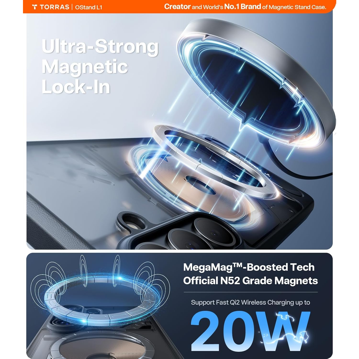 TORRAS Manyetik Standlı Kılıf Lideri: 2022'den beri Samsung Galaxy S26 Plus kullanıcıları için manyetik standlı kılıflarda öncüyüz. 5 yıllık inovasyonun ardından Ostand L1, görünmez bir standı MagSafe ile birleştiriyor. USPTO'ya özel patentli standı (US12401736B2), N52 sınıfı mıknatısları ve MegaMag-Boosted Magnetism özelliğiyle güçlü bir tutuş ve verimli kablosuz şarj sağlıyor. İnce ve düz stand, MagSafe şarjını kesintiye uğratmadan birden fazla açıdan sabit, eller serbest görüntüleme imkanı sunuyor.
