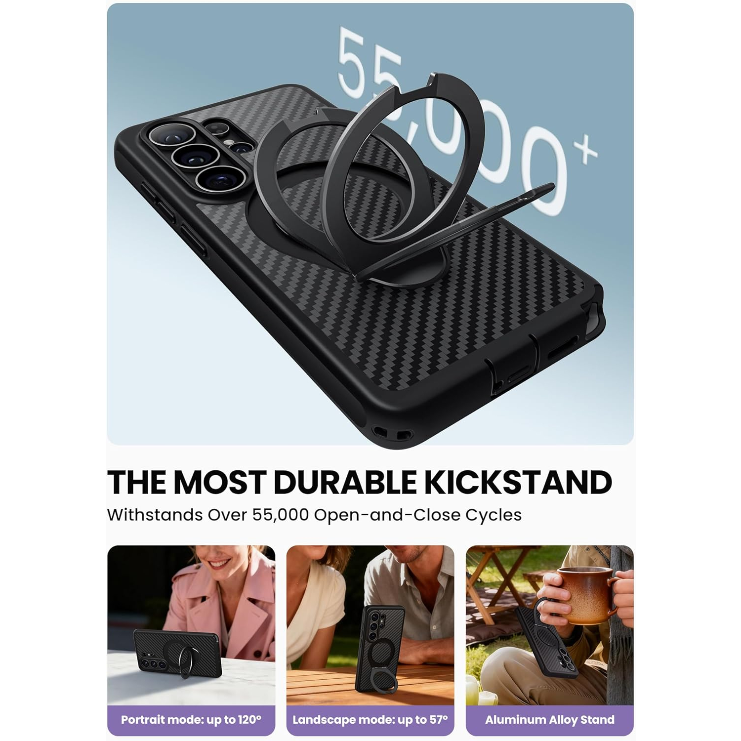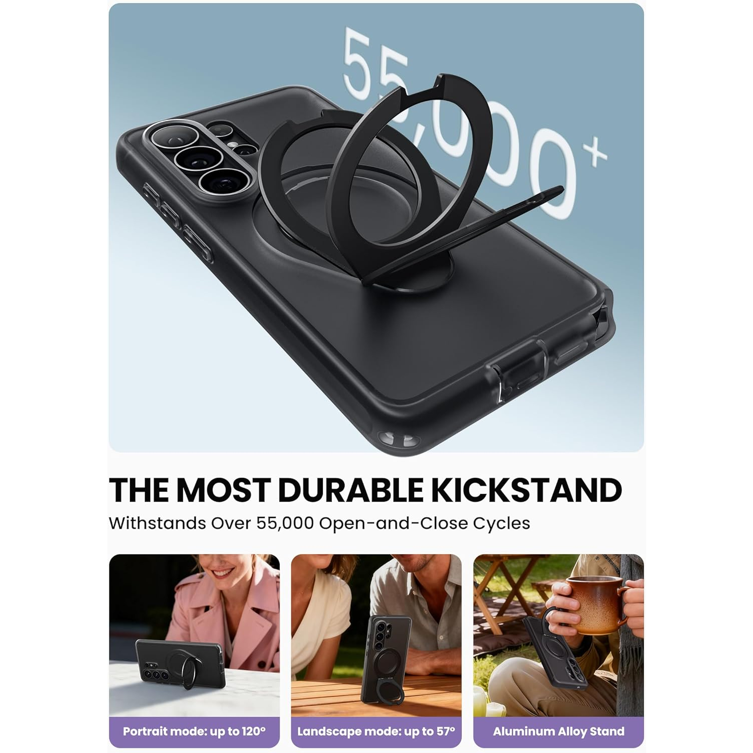 [2'si 1 Arada Ayarlanabilir Stand ve Yüzük] Sağlam alüminyum alaşımlı stand, birden fazla görüş açısı sunarken, aynı zamanda mesajlaşırken, selfie çekerken veya hareket halindeyken güvenli ve kaymaz bir tutuş için yüzük tutucu görevi de görür.