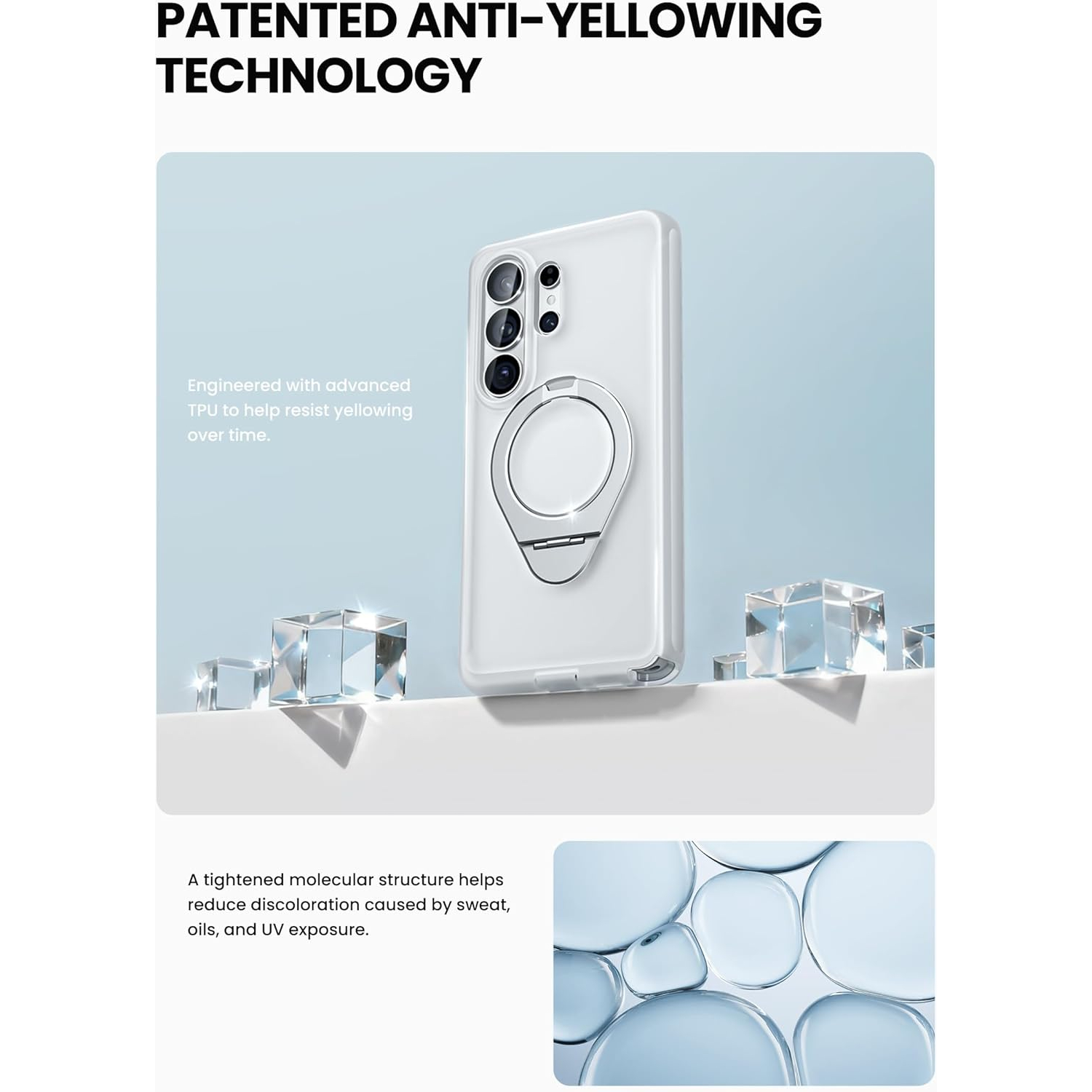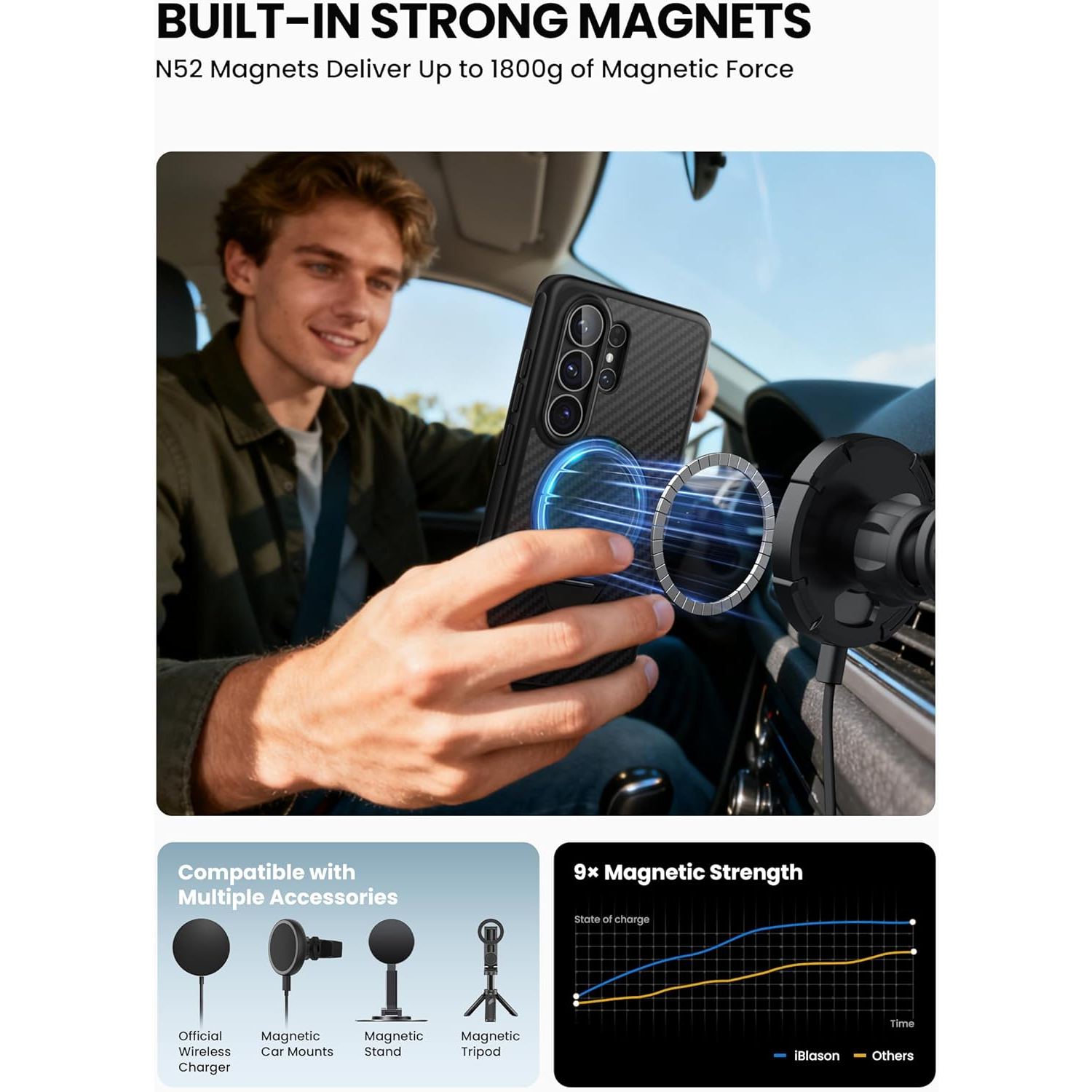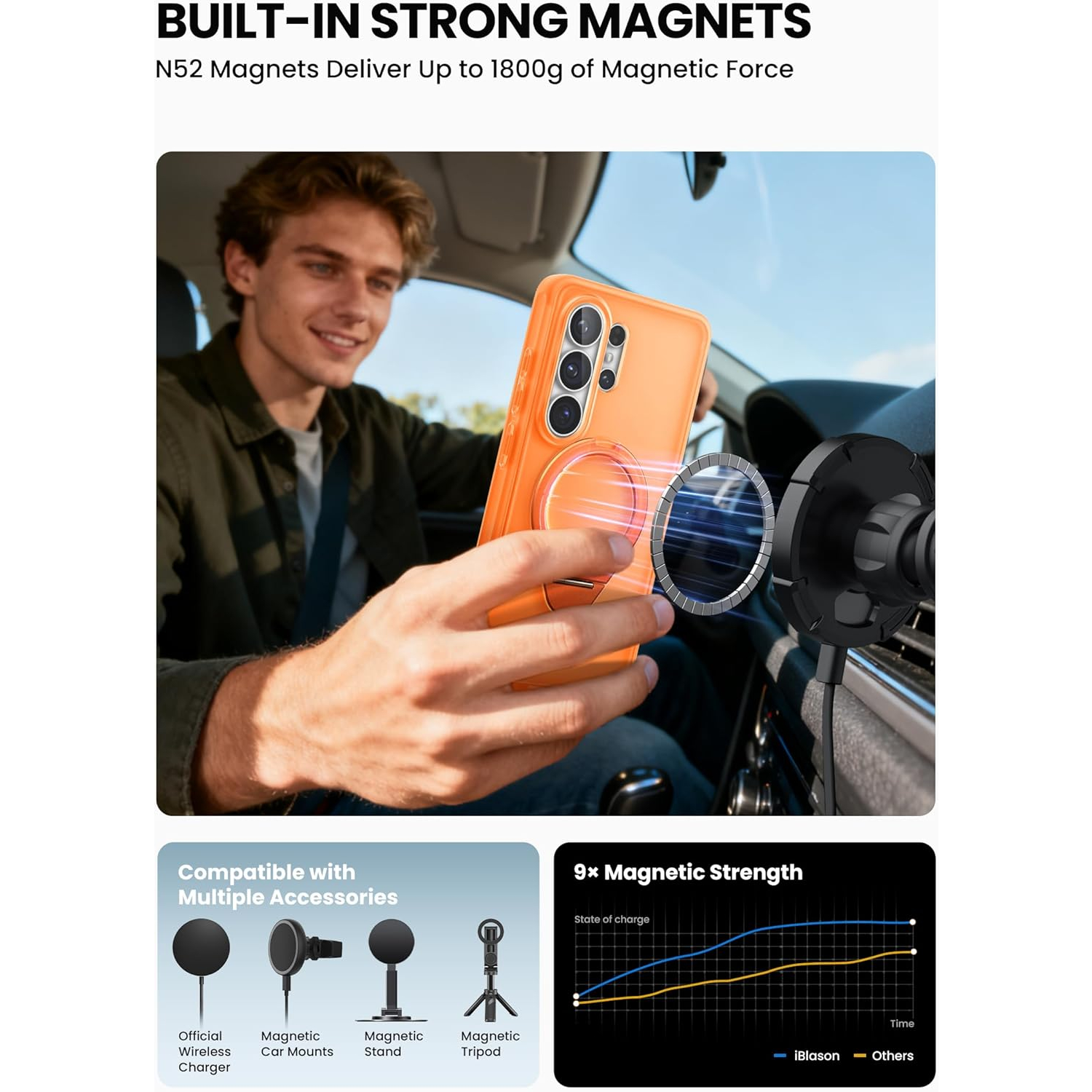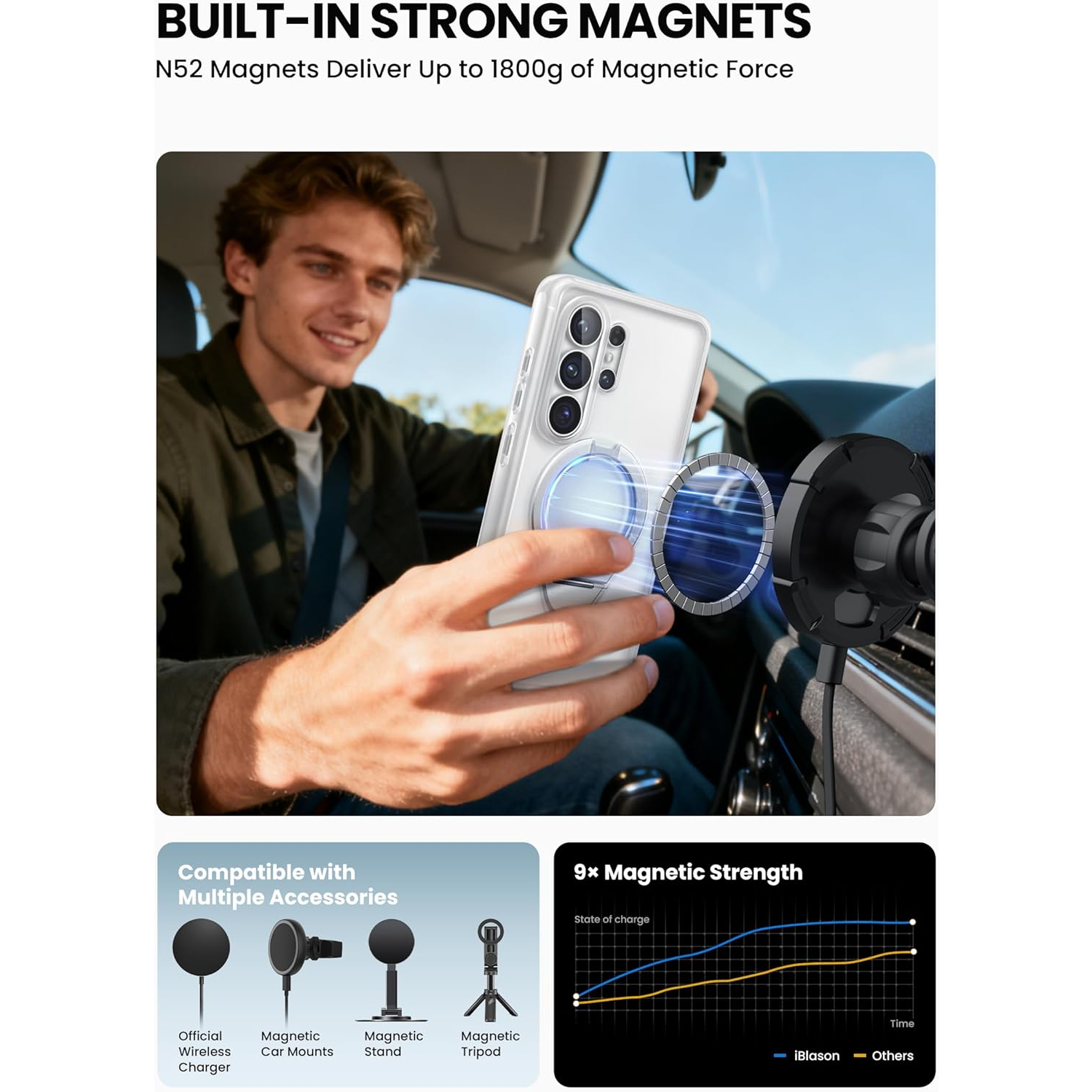 [Daha Güçlü Mıknatıslar ve Sararma Önleyici Teknoloji] Dahili N52 mıknatıs, MagSafe aksesuarları ve kablosuz şarj cihazlarıyla güvenilir uyumluluk için 1800 g'a kadar manyetik kuvvet sağlar. Gelişmiş sararmayan malzemeler, uzun süreli netlik için UV ışınlarına, günlük aşınmaya ve lekelere karşı dayanıklıdır.