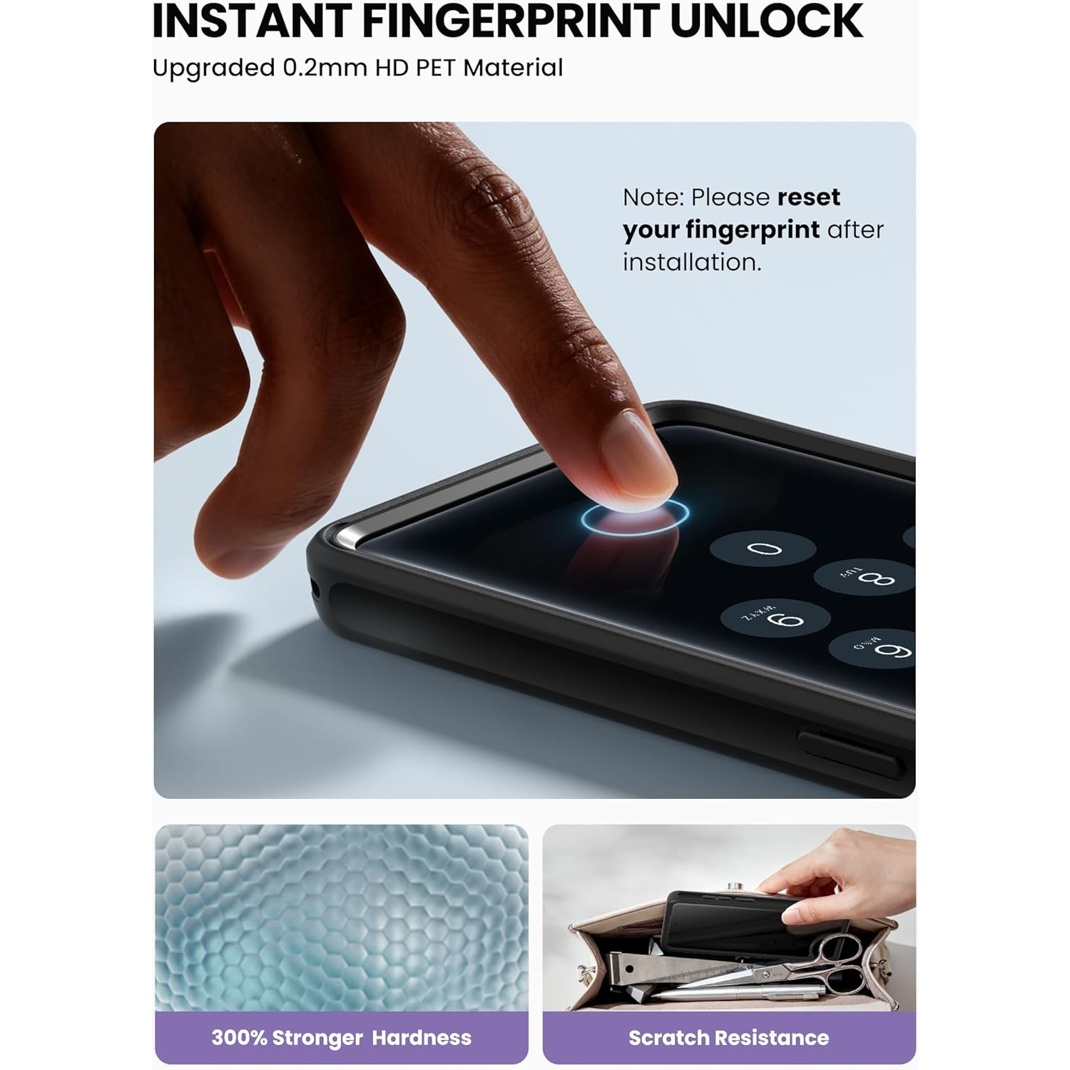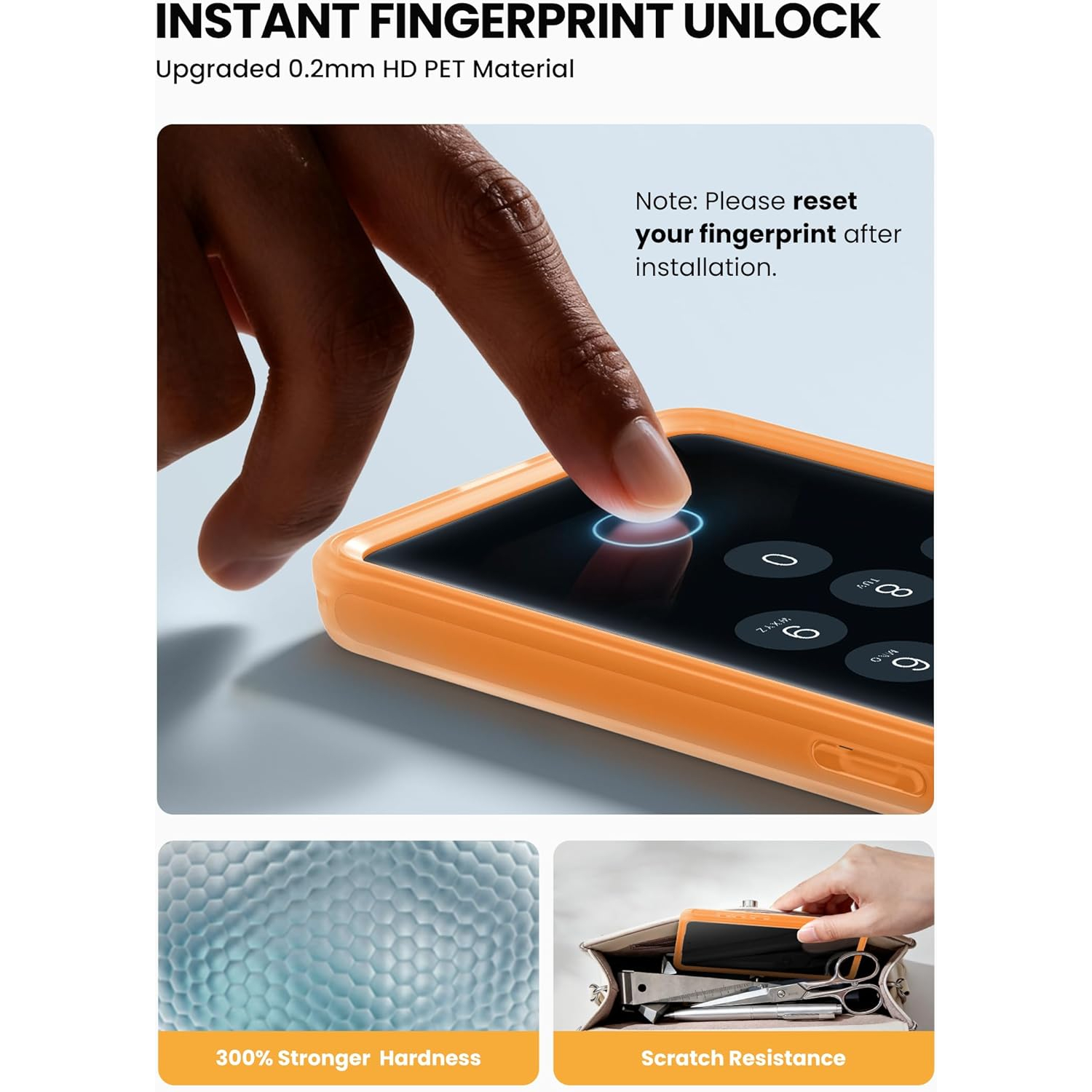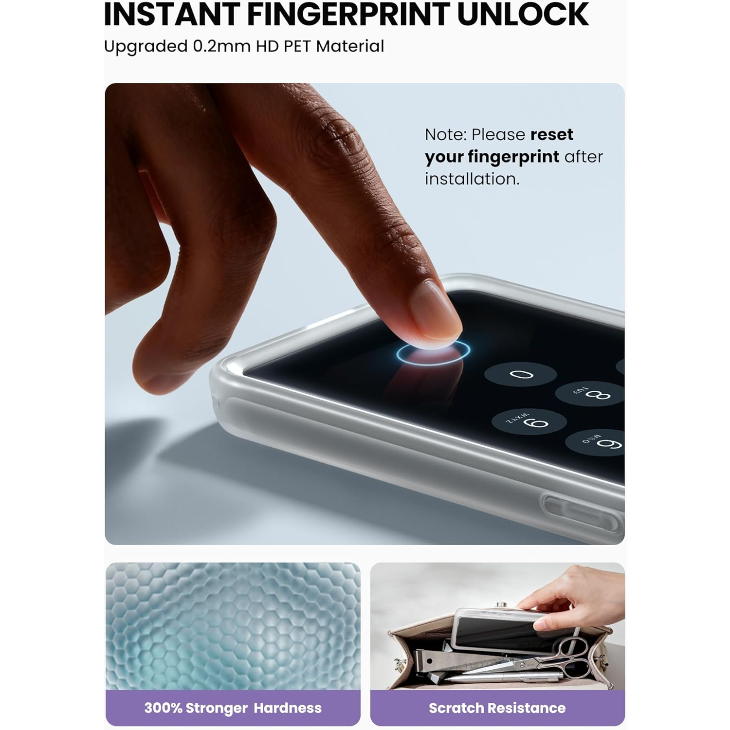 [Entegre Ekran Koruyucu] Parmak İzi Kimliği ile uyumlu ultra şeffaf entegre ekran koruyucu. Dokunma hassasiyetinden ödün vermeden çizik ve çatlakları önlemeye yardımcı olur. NOT: En iyi performans için lütfen kurulumdan sonra Parmak İzi Kimliğinizi sıfırlayın.